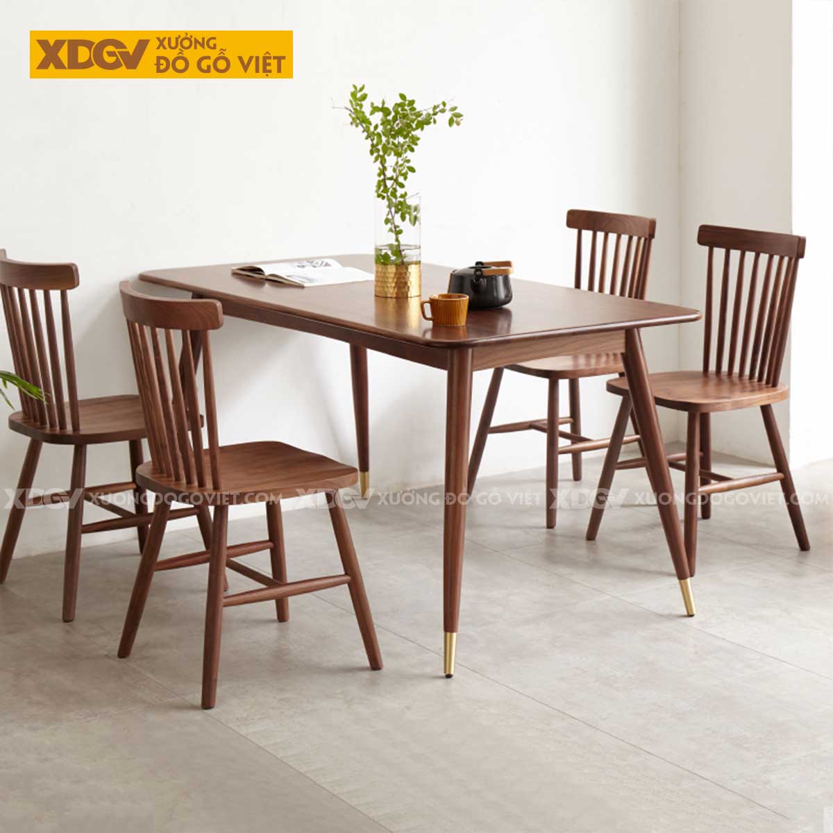 Điểm nổi bật: | Bàn thon bo góc với 4 chân trụ tròn chắc chắn. Ghế Windsor nhiều nan dọc. Vật liệu gỗ Óc Chó tự nhiên sang trọng & độ bền cao. |