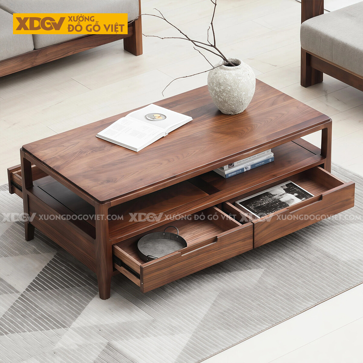 Bàn Sofa Phòng Khách Gỗ Óc Chó 2 Tầng Ngăn Kéo Lưu Trữ Lớn