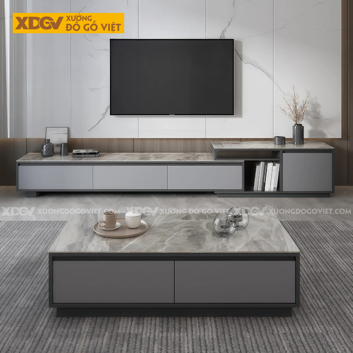 Bàn Trà Phòng Khách Hiện Đại Sofa Gỗ MDF Ngăn Kéo Dáng Vuông