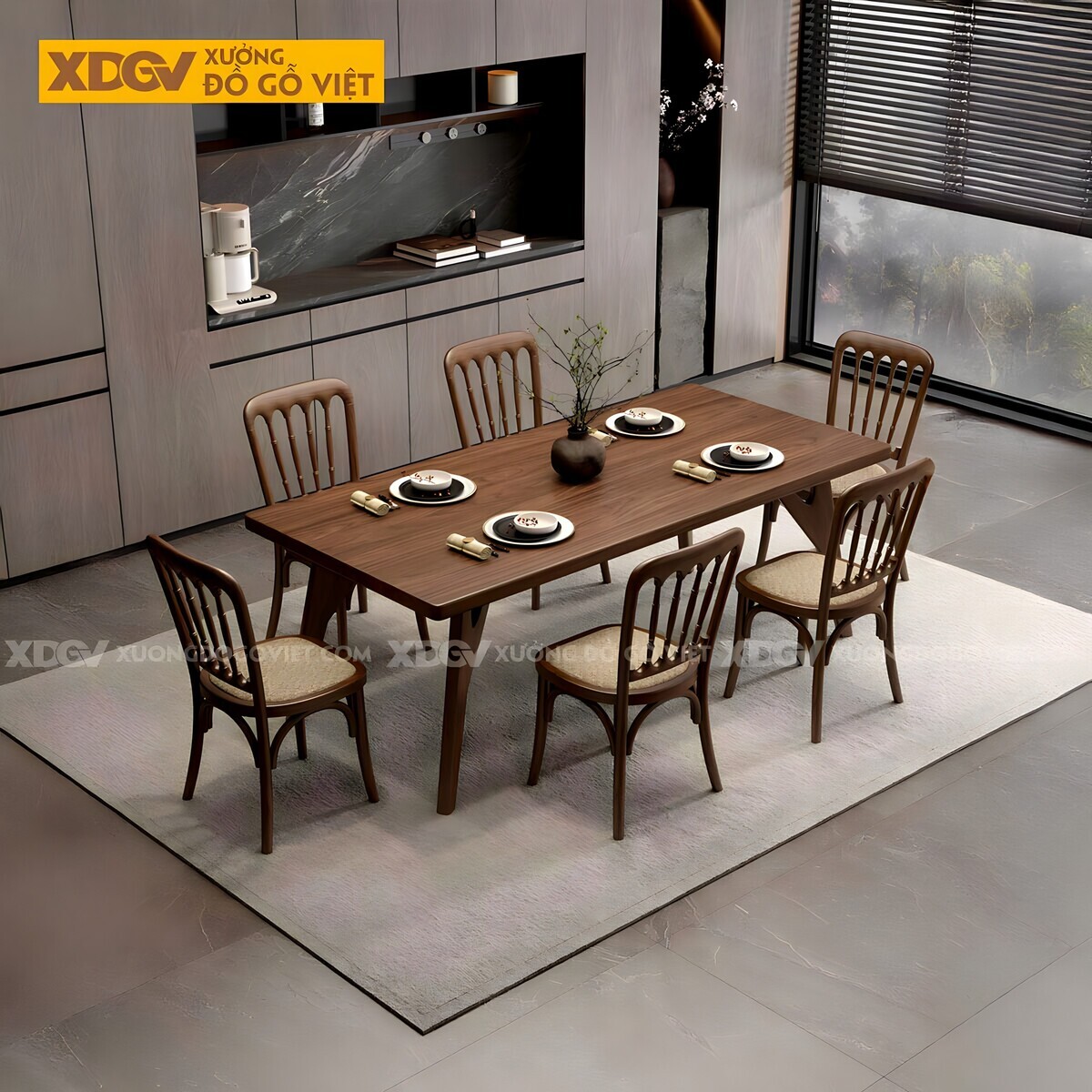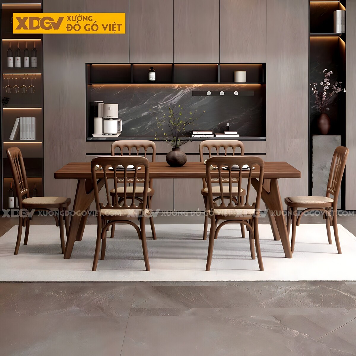 Bộ bàn ăn 6 ghế gõ Óc Chó không dành cho những ai tìm kiếm sự an toàn. Nó là lựa chọn của những người dẫn đầu xu hướng, những người xem ngôi nhà là một phòng trưng bày cá tính.