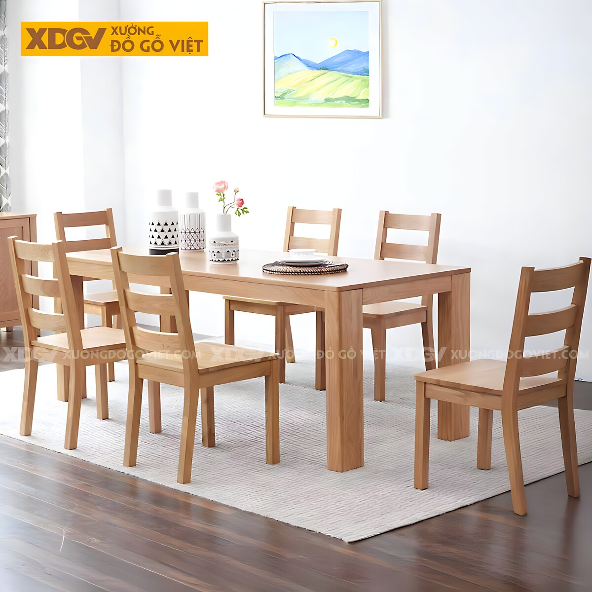 Trung tâm của mọi hoạt động gia đình: Với kích thước lớn và độ bền cao, bàn ăn gỗ sồi tự nhiên không chỉ dành cho các bữa ăn sum họp. Đây còn là nơi lý tưởng để con trẻ học bài, cả nhà cùng tham gia các hoạt động thủ công hay làm việc tại nhà mà không cần lo lắng về việc hư hại.