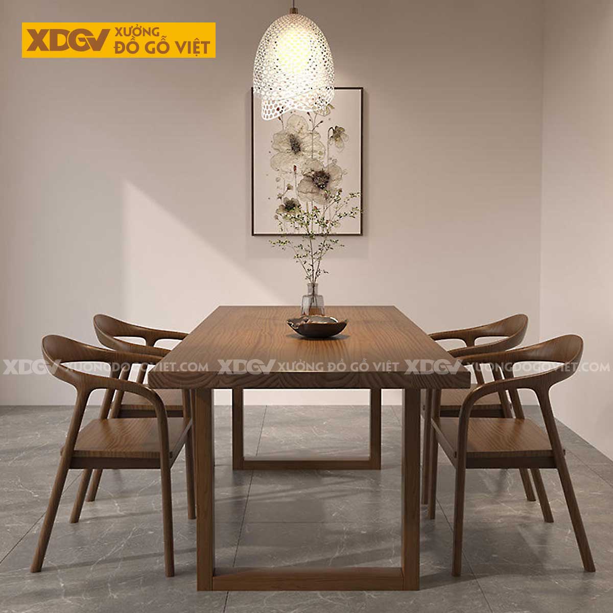 Bàn ăn vững chãi: Mặt bàn dày dặn kết hợp với thiết kế chân bàn dạng hộp độc đáo, không chỉ tạo nên một kết cấu cực kỳ vững chắc mà còn là điểm nhấn thị giác đầy hiện đại.