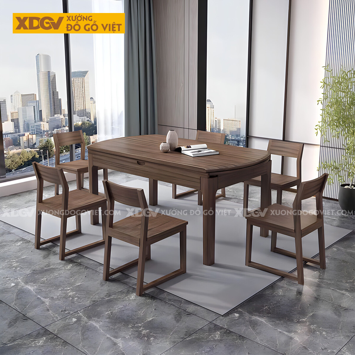 Bộ Bàn Ăn Gỗ Óc Chó 6 Ghế Mở Rộng Diện Tích Linh Hoạt