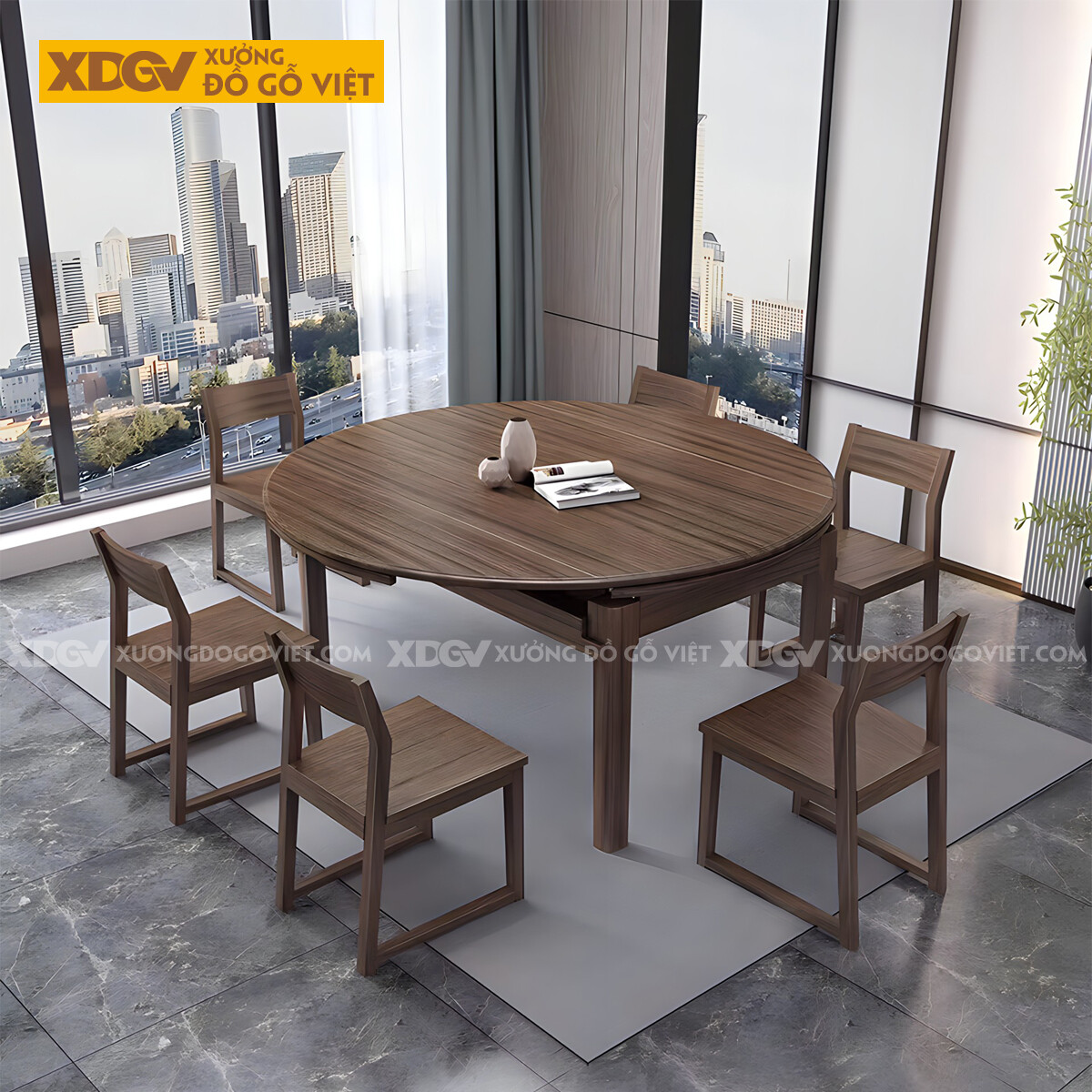 Bộ Bàn Gỗ Óc Chó Hiện Đại Thay Đổi Vuông Tròn Linh Hoạt