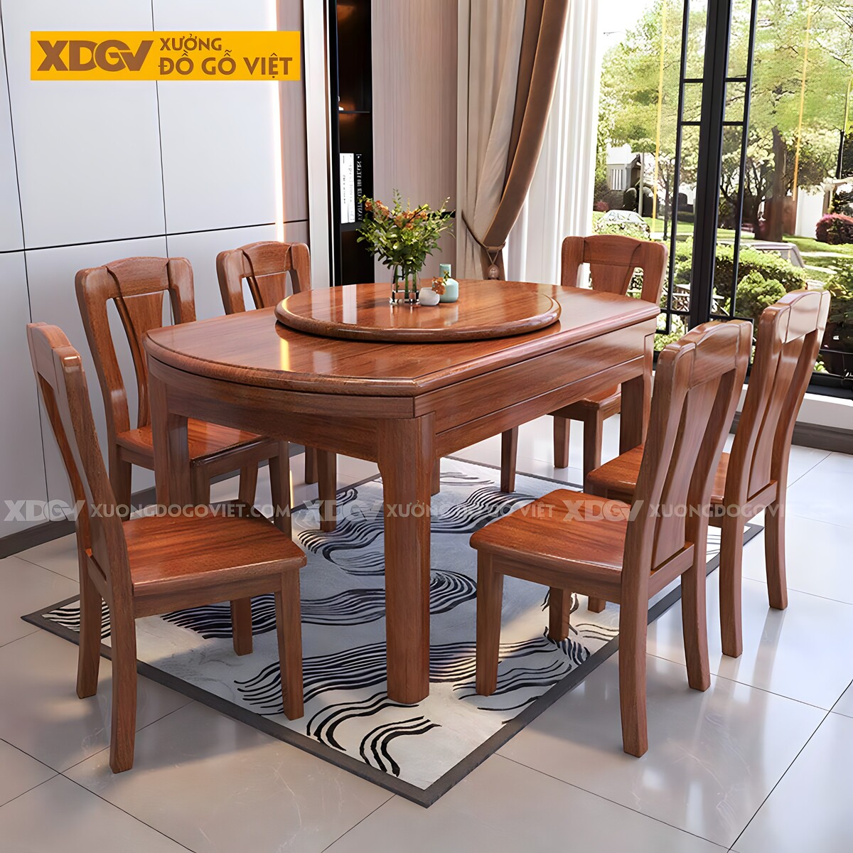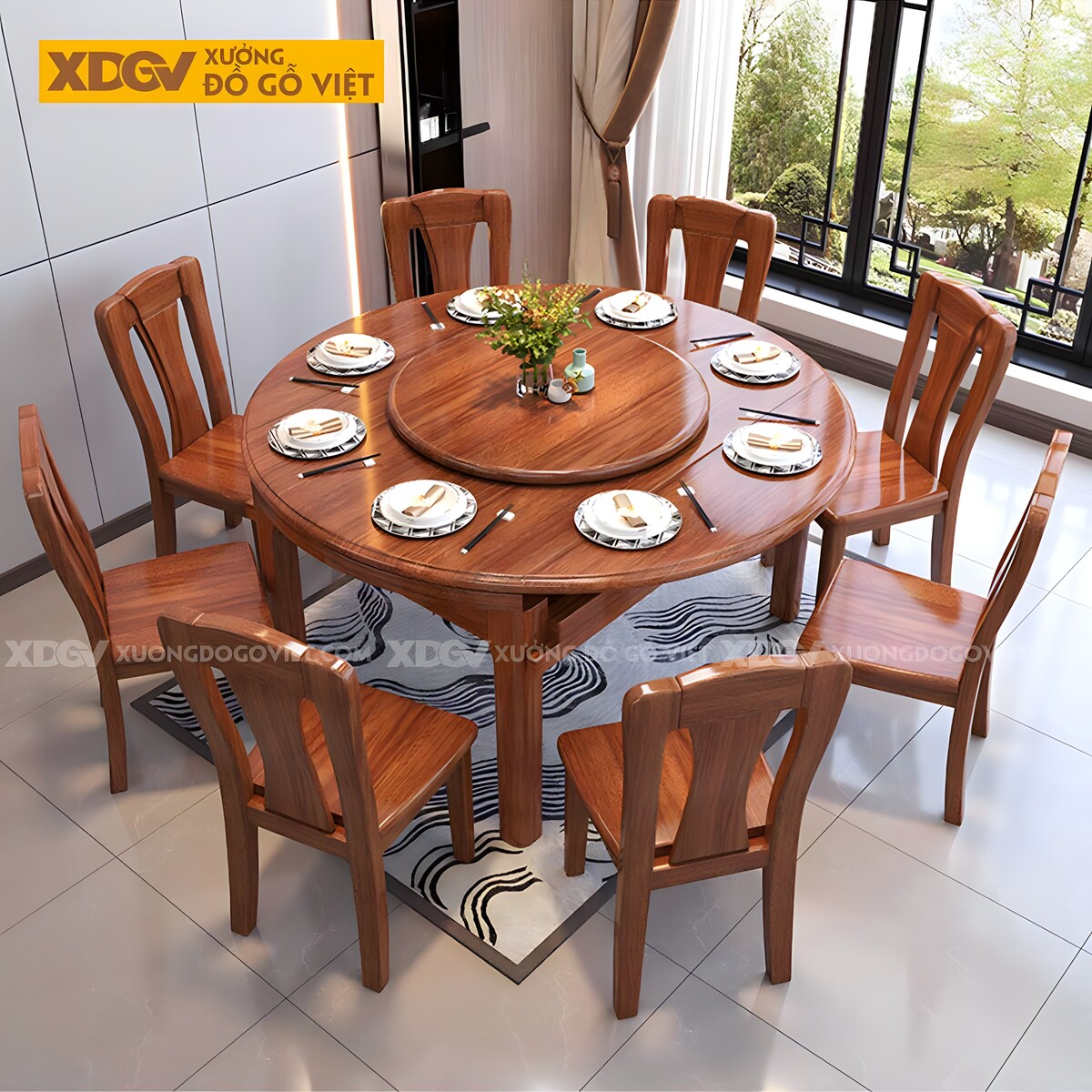 | Thông tin bộ sản phẩm: | Bao gồm: 1 bàn ăn và 6-8 ghế ăn đồng bộ (phụ kiện mâm xoay 360 độ). |