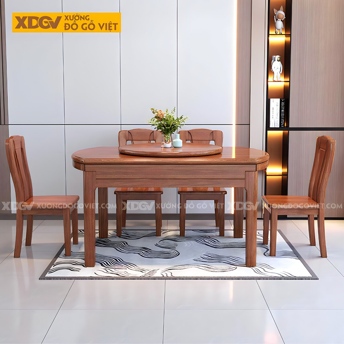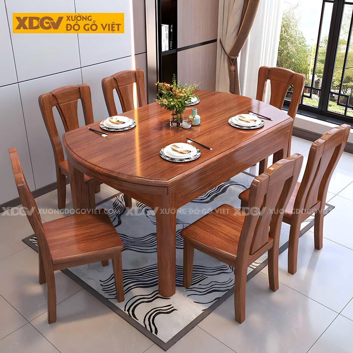 Dạng Bàn Tròn Đầy Đặn: Chỉ với vài thao tác đơn giản, bàn ăn nhanh chóng được mở rộng thành hình tròn bề thế, sẵn sàng cho những buổi sum họp từ 6-8 người.