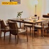 Sức hấp dẫn của bộ bàn ăn đến từ sự kết hợp hài hòa giữa phong cách Mid-Century Modern và tinh thần Japandi, được điểm xuyết bằng những chi tiết hiện đại đắt giá.