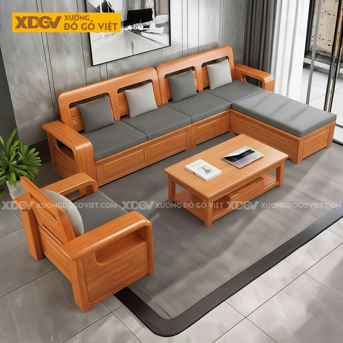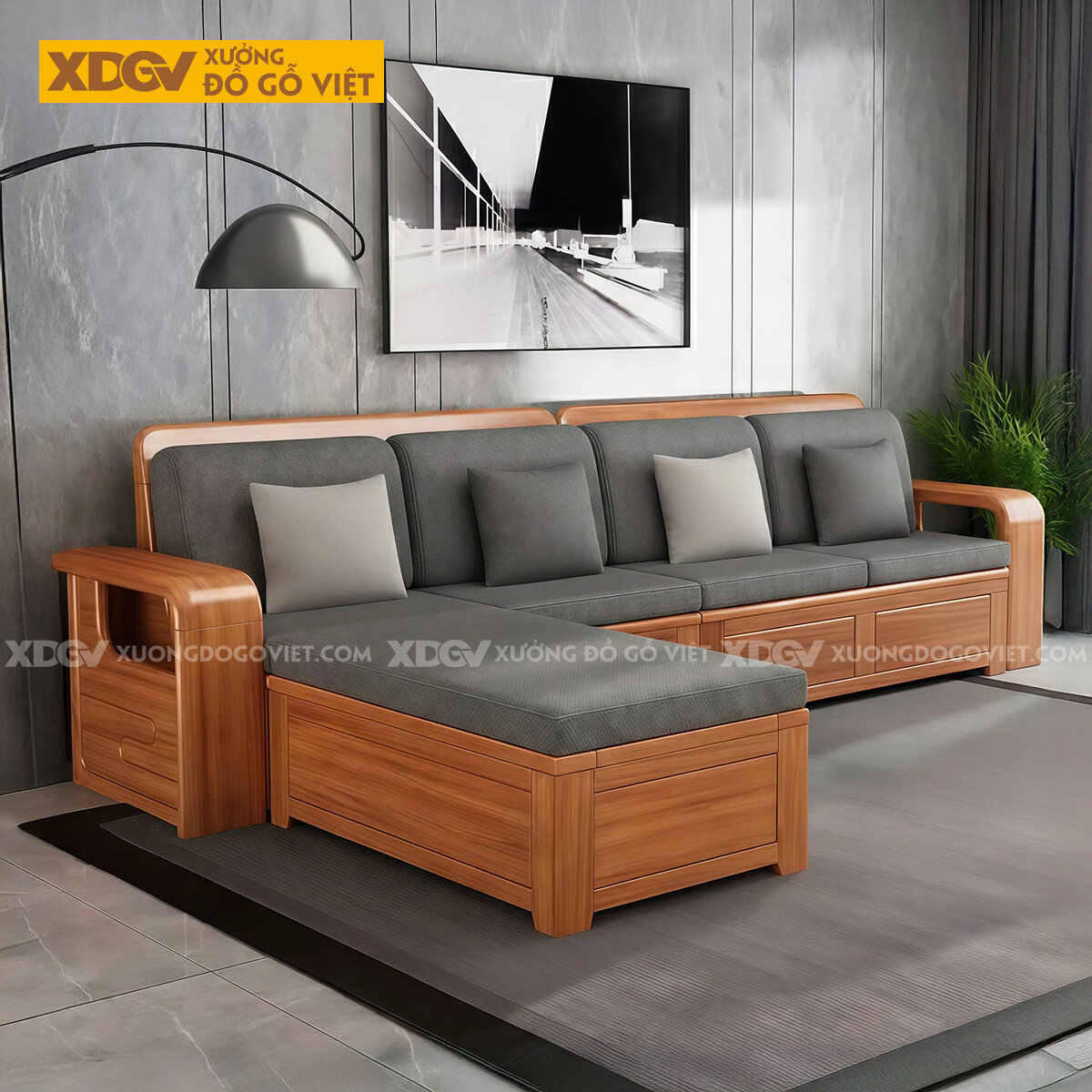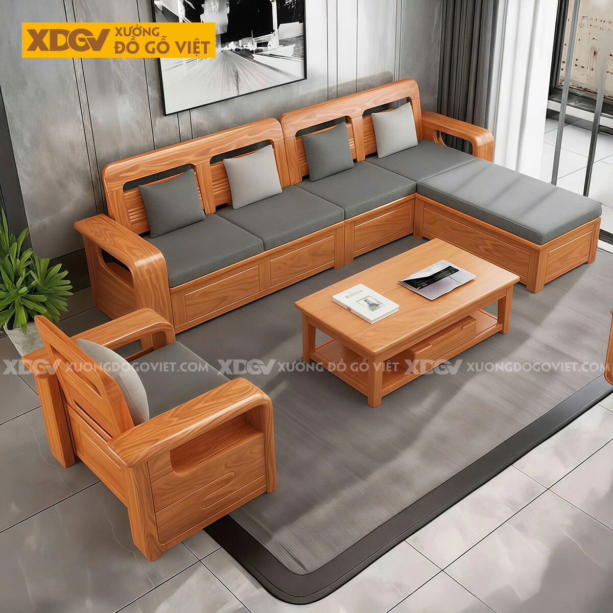 - Góc L nối dài: Dài 110cm x Rộng 60cm x Cao 32cm không nệm/Cao 42cm cả nệm.