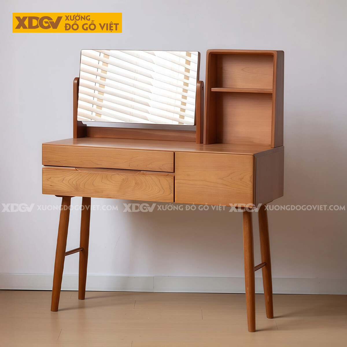 Bộ Bàn Trang Điểm Phòng Ngủ Gỗ Sồi Chân Cao Chữ H Phối Gương