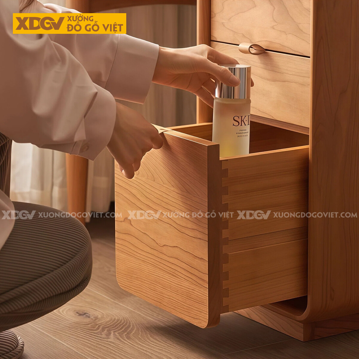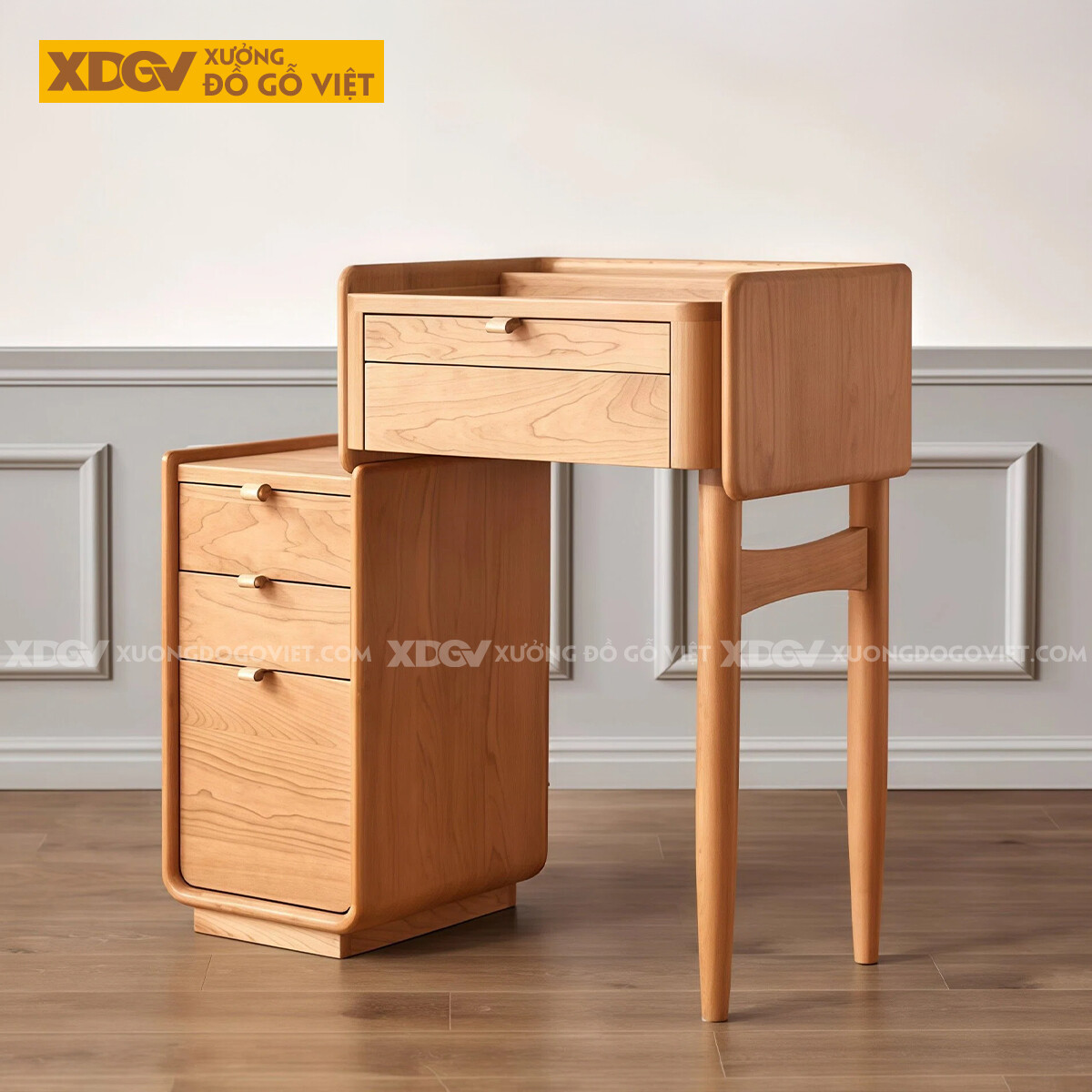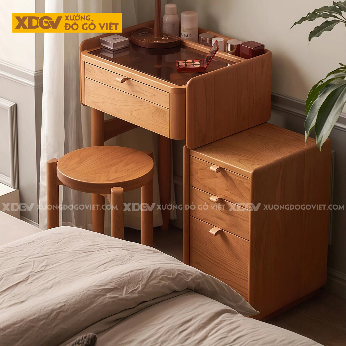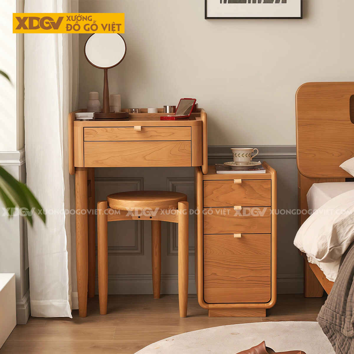 Bộ Bàn Trang Điểm Phòng Ngủ Gỗ Sồi Bo Góc Chân Côn Kèm Gương