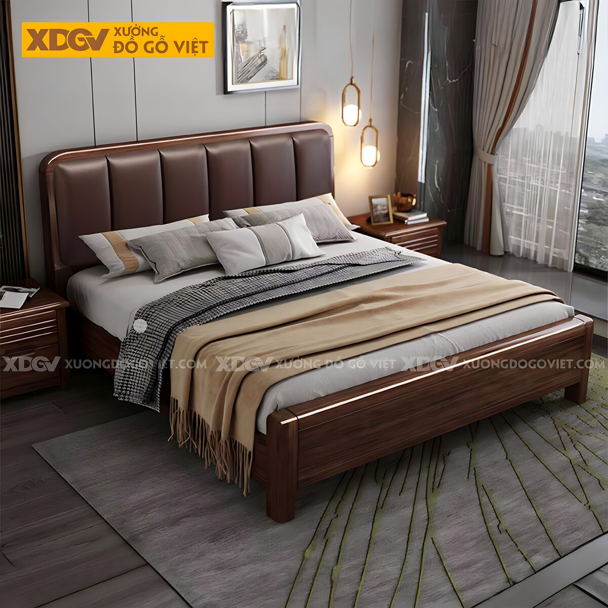 Giường Ngủ Gỗ Óc Chó Hiện Đại Đa Năng Đầu Kẻ Chỉ Dọc...