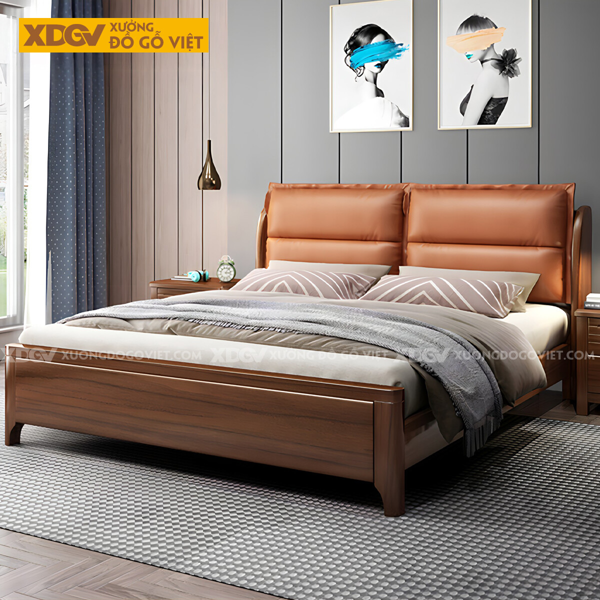 Giường Ngủ Gỗ Sồi Dày Dặn Soi Rãnh Chỉ Chìm Phân Tầng