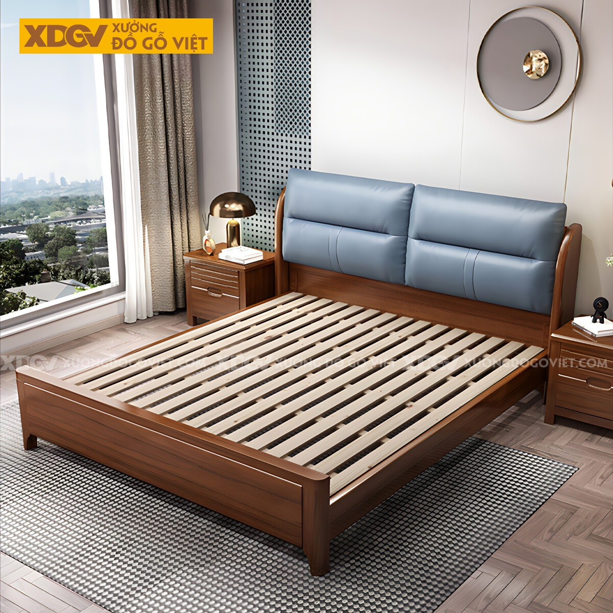 Giường Gỗ Sồi Tự Nhiên Kiểu Nhật Vai Dày Bo Góc Hiện Đại