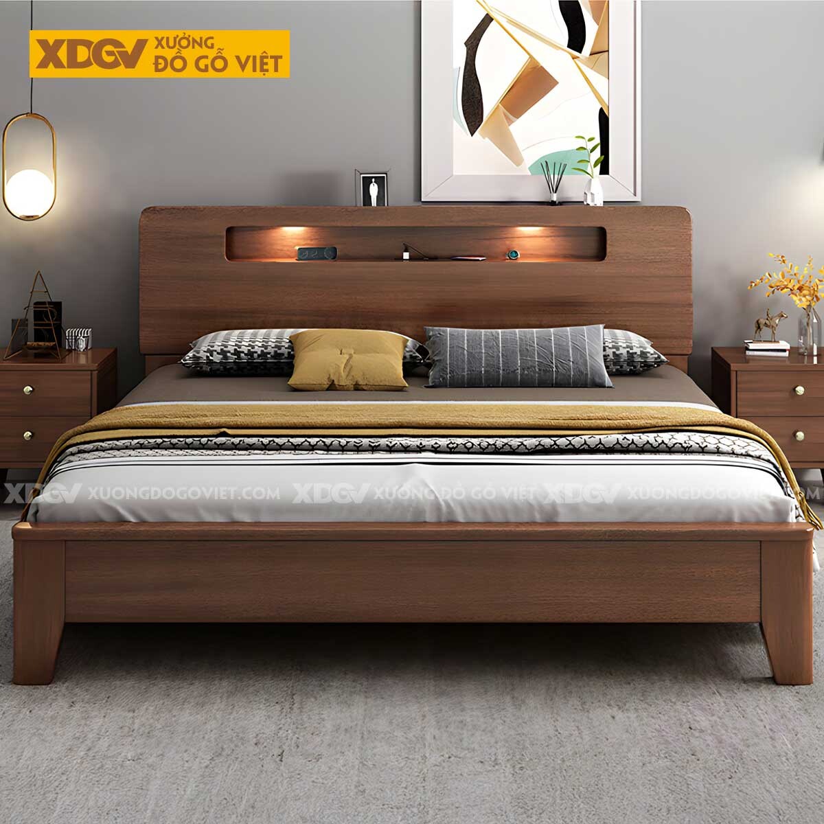 Giường Ngủ Gỗ Óc Chó Hiện Đại Đa Năng Đầu Kẻ Chỉ Dọc...