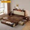 Giường Ngủ Gỗ Óc Chó Đuôi Hệ Ngăn Kéo Đầu Bọc Nệm Có Kệ