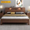Giường Ngủ Gỗ Veneer Óc Chó Tích Hợp 2 Kệ Để Đồ Có Đèn Led