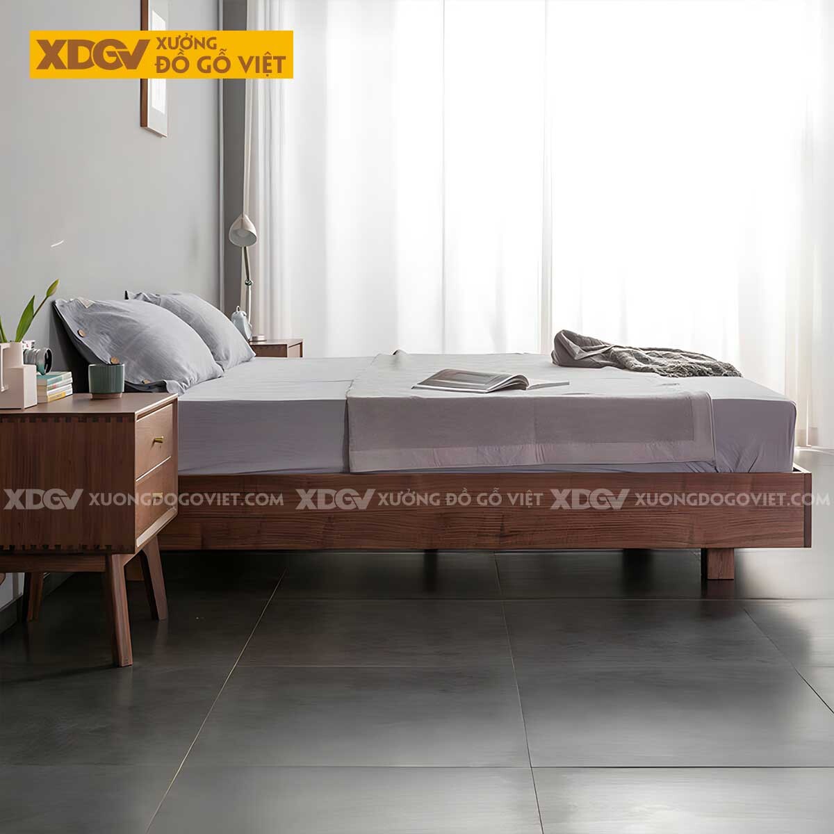 Giường Ngủ Hộp Gỗ Óc Chó Japandi Giấu Chân Tối Giản Hiện Đại