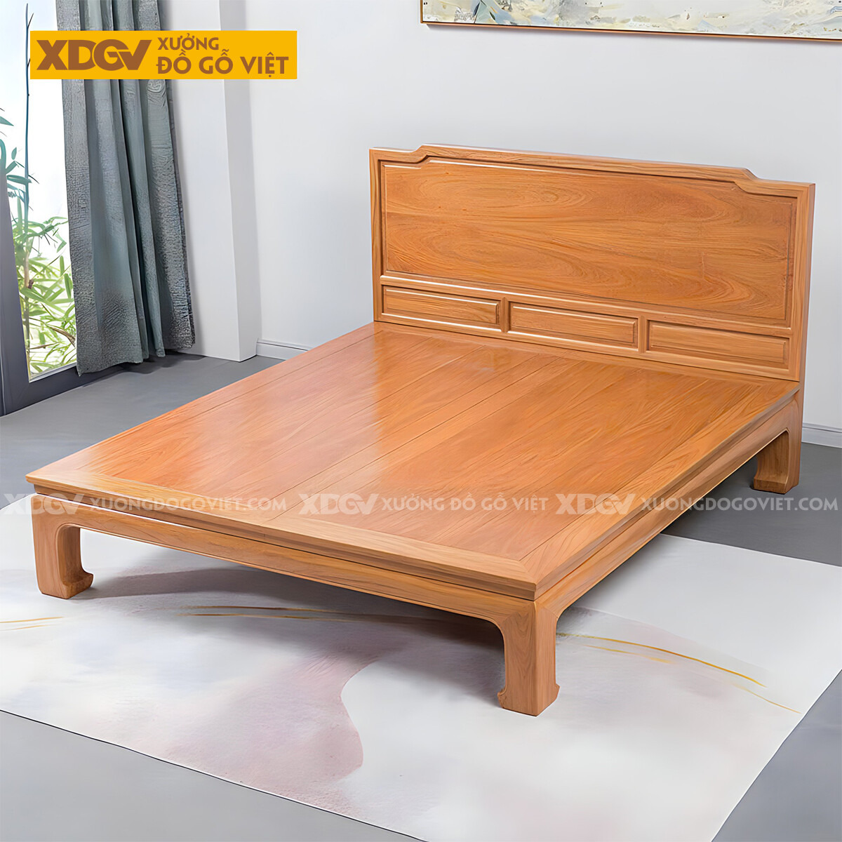 Giường Phản Gỗ Gõ Đỏ Hiện Đại Tối Giản Chân Quỳ Sang Trọng