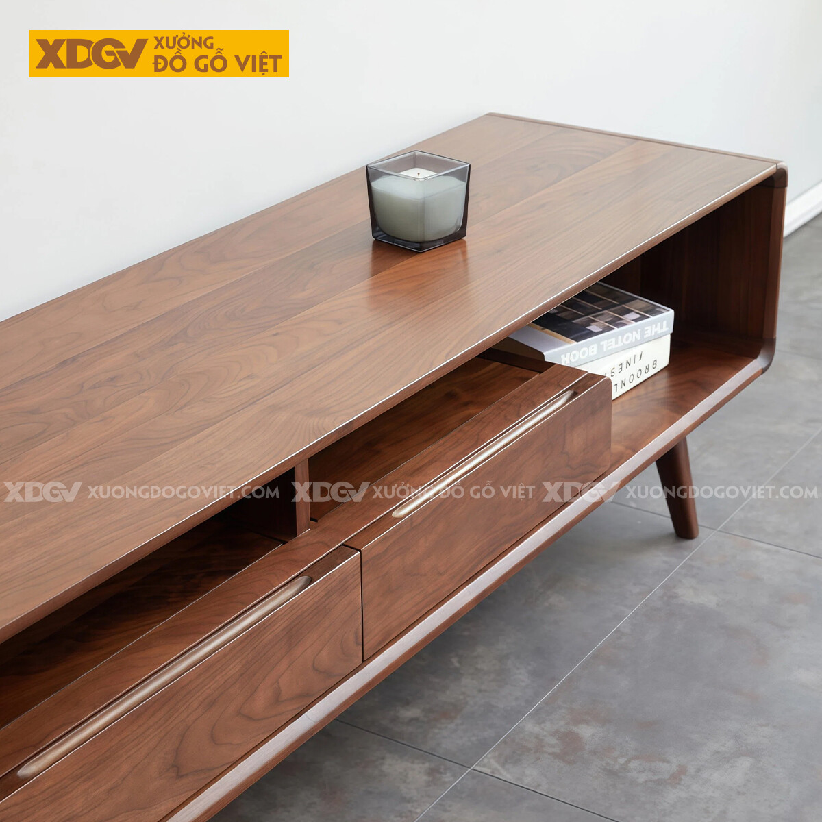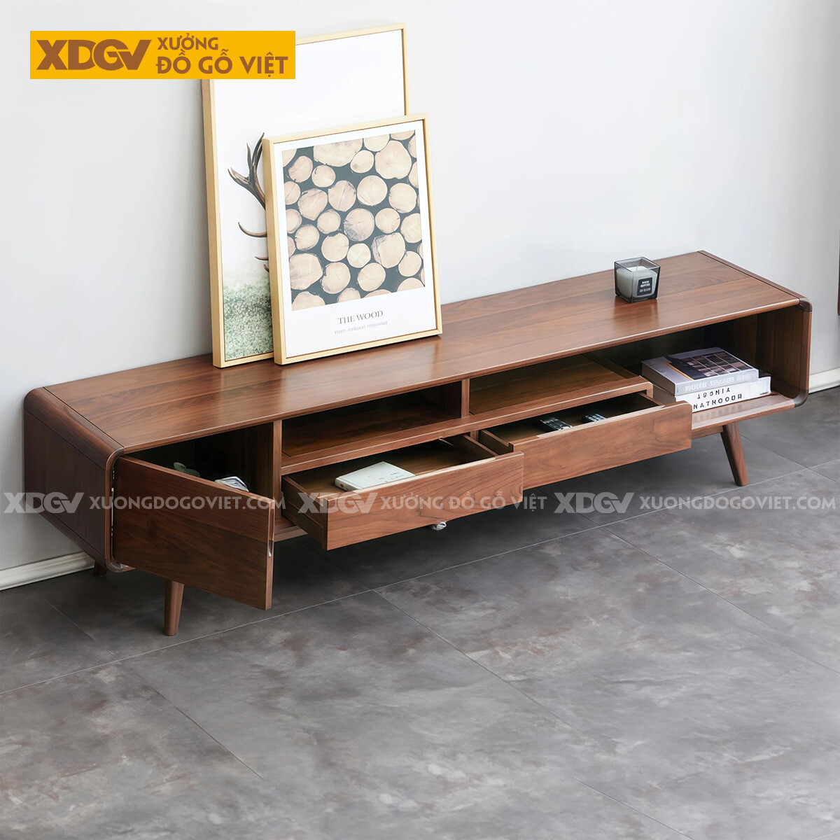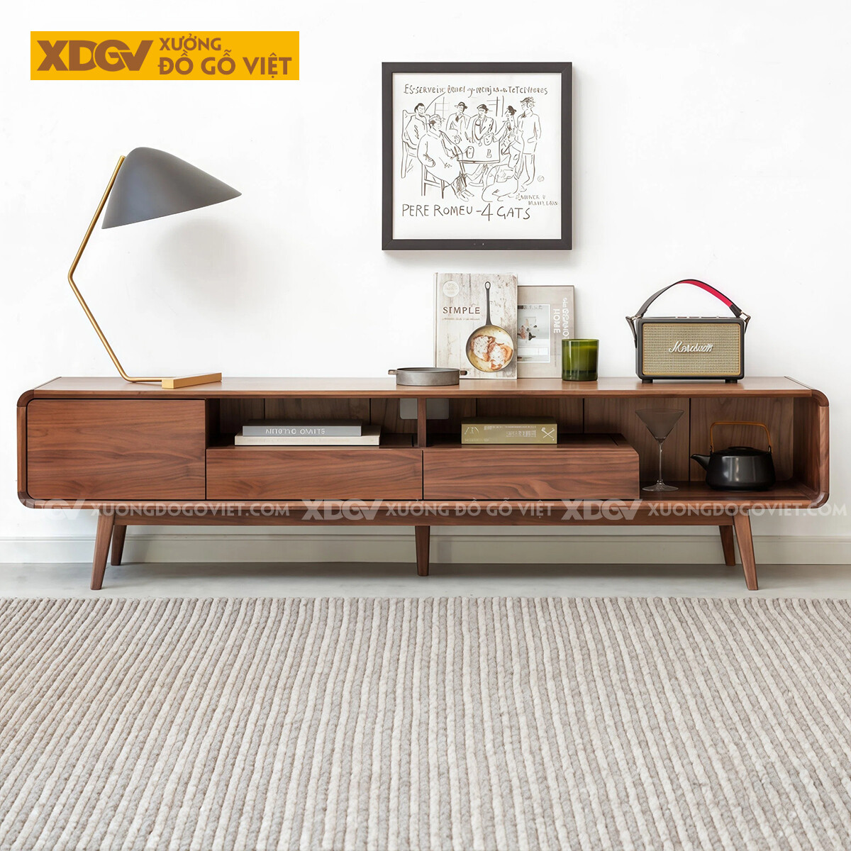 Kệ Để Tivi Gỗ Óc Chó Kiểu Bắc Âu Khung Bo Cong Chân Vát