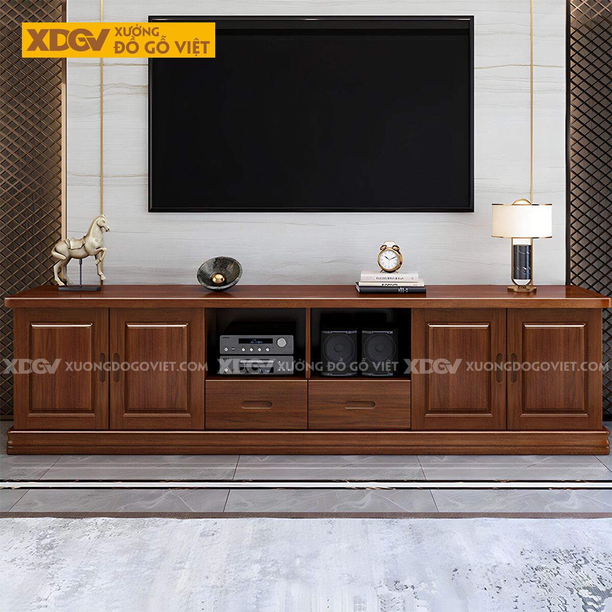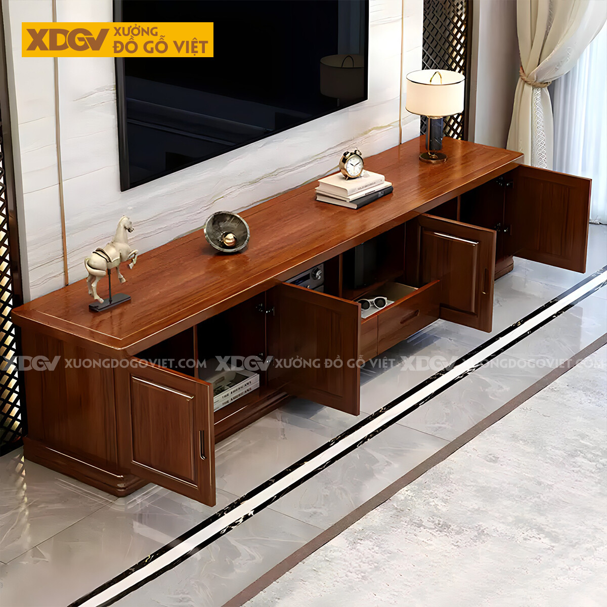 Kệ Để Tivi Phòng Khách Gỗ Xoan Đào Dáng Truyền Thống Bo Cạnh