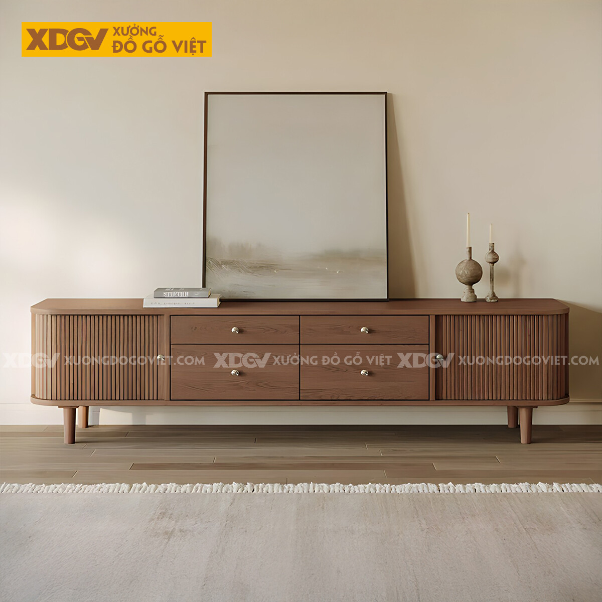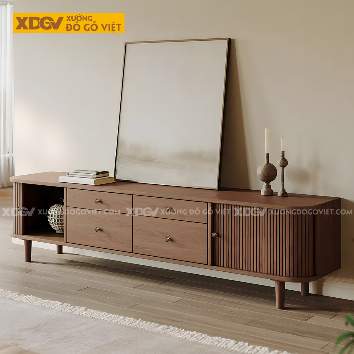 Kệ Tivi Gỗ Sồi Mỹ Cánh Ngăn Kéo Góc Bo Tròn Ghép Liền Mạch