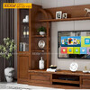 Kệ Tivi Sồi Liền Tủ Cánh Kính Tích Hợp Ngăn Kéo Và Kệ Trên