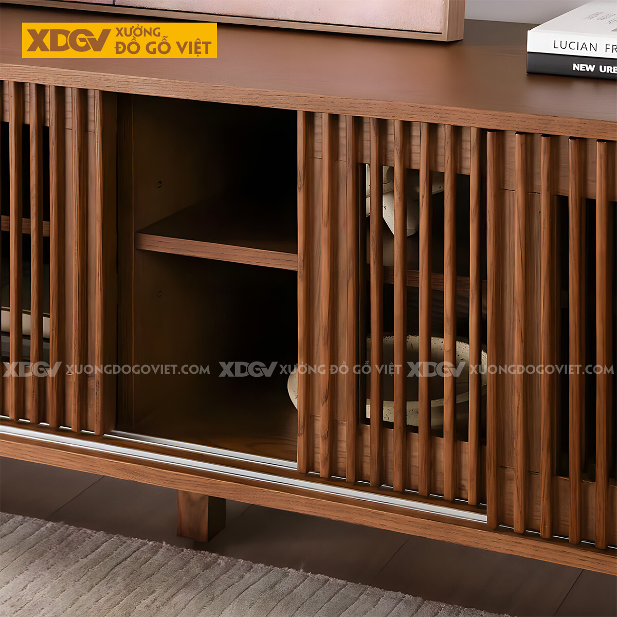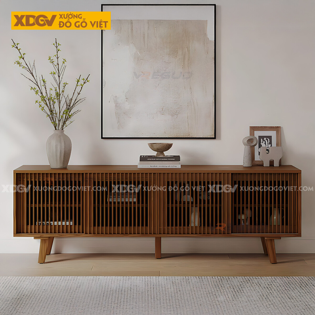 Kệ Tivi Gỗ Sồi Mỹ Bắc Âu Tối Giản Cánh Lùa Thanh Nan Dọc