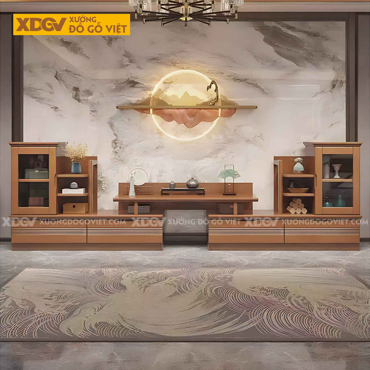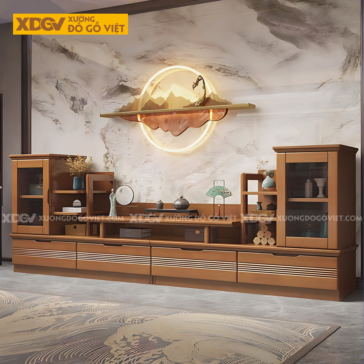 Kệ Tivi Kết Hợp Tủ Gỗ Sồi Đối Xứng Đa Tầng Trưng Bày Lưu Trữ
