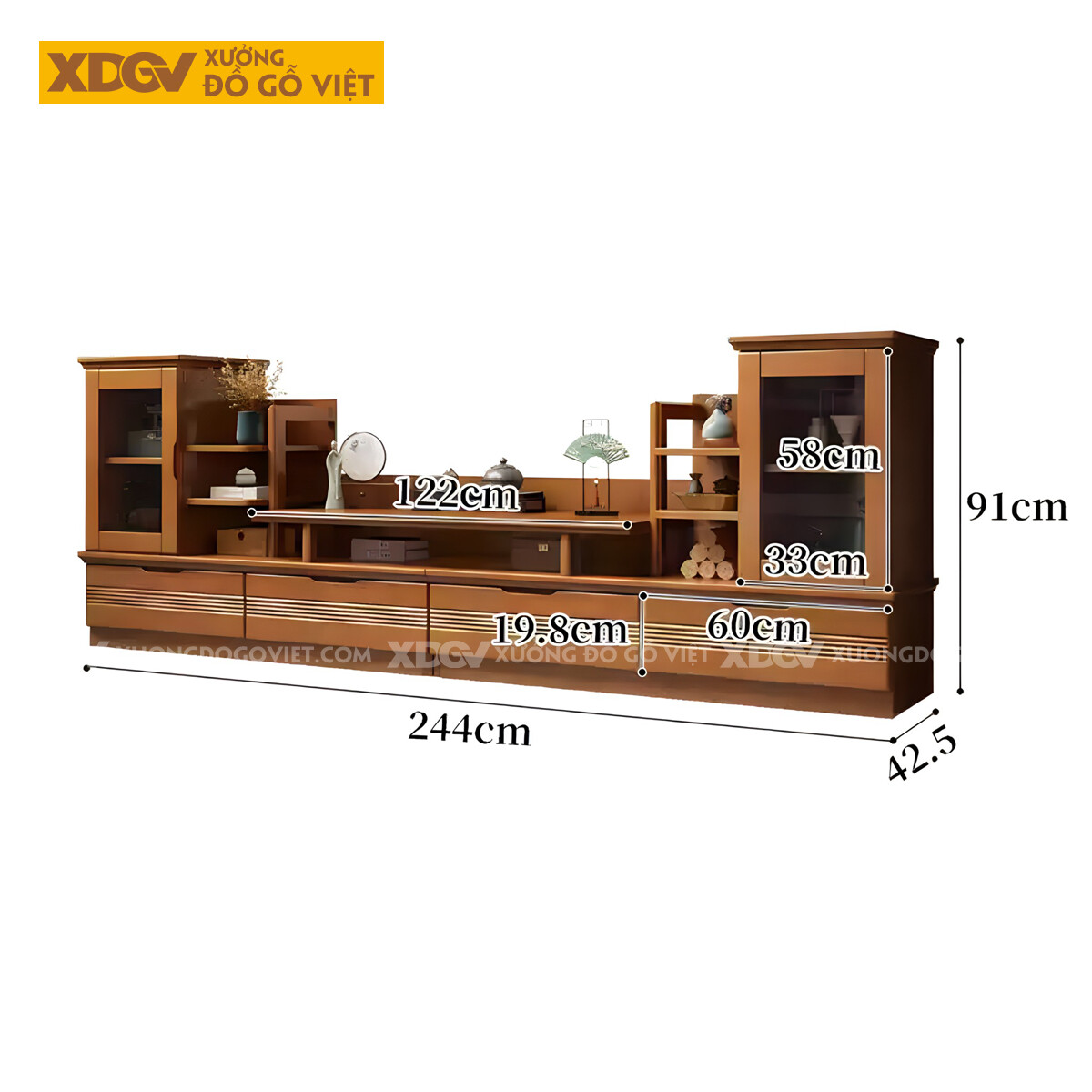Kệ Tivi Kèm Tủ Đồ Trang Trí Gỗ Sồi Tự Nhiên