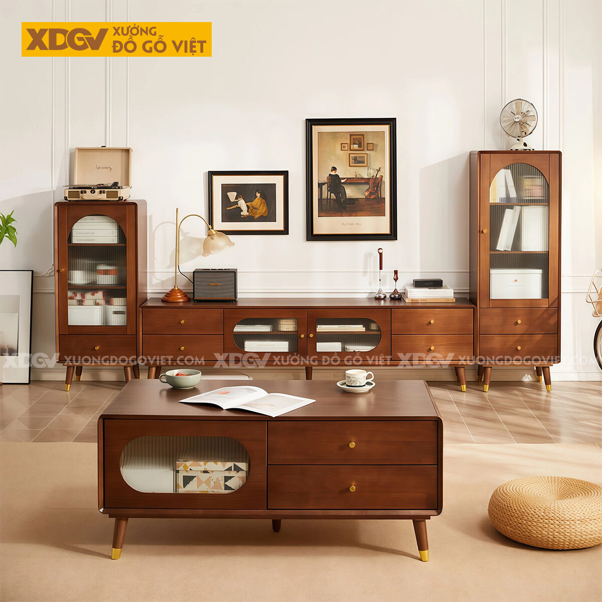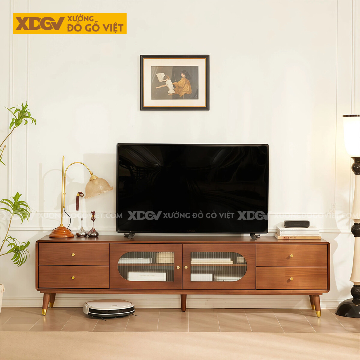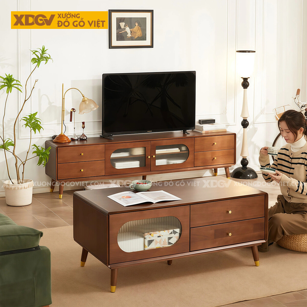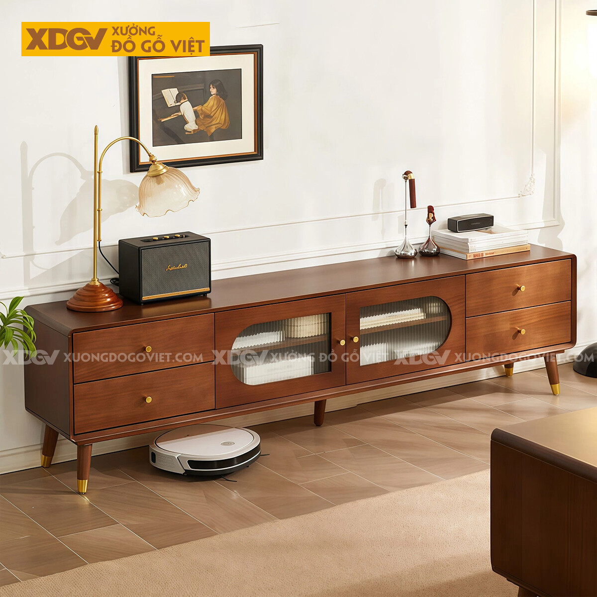 Kệ Tivi Phòng Khách Phong Cách Bắc Âu Gỗ Xoan Đào
