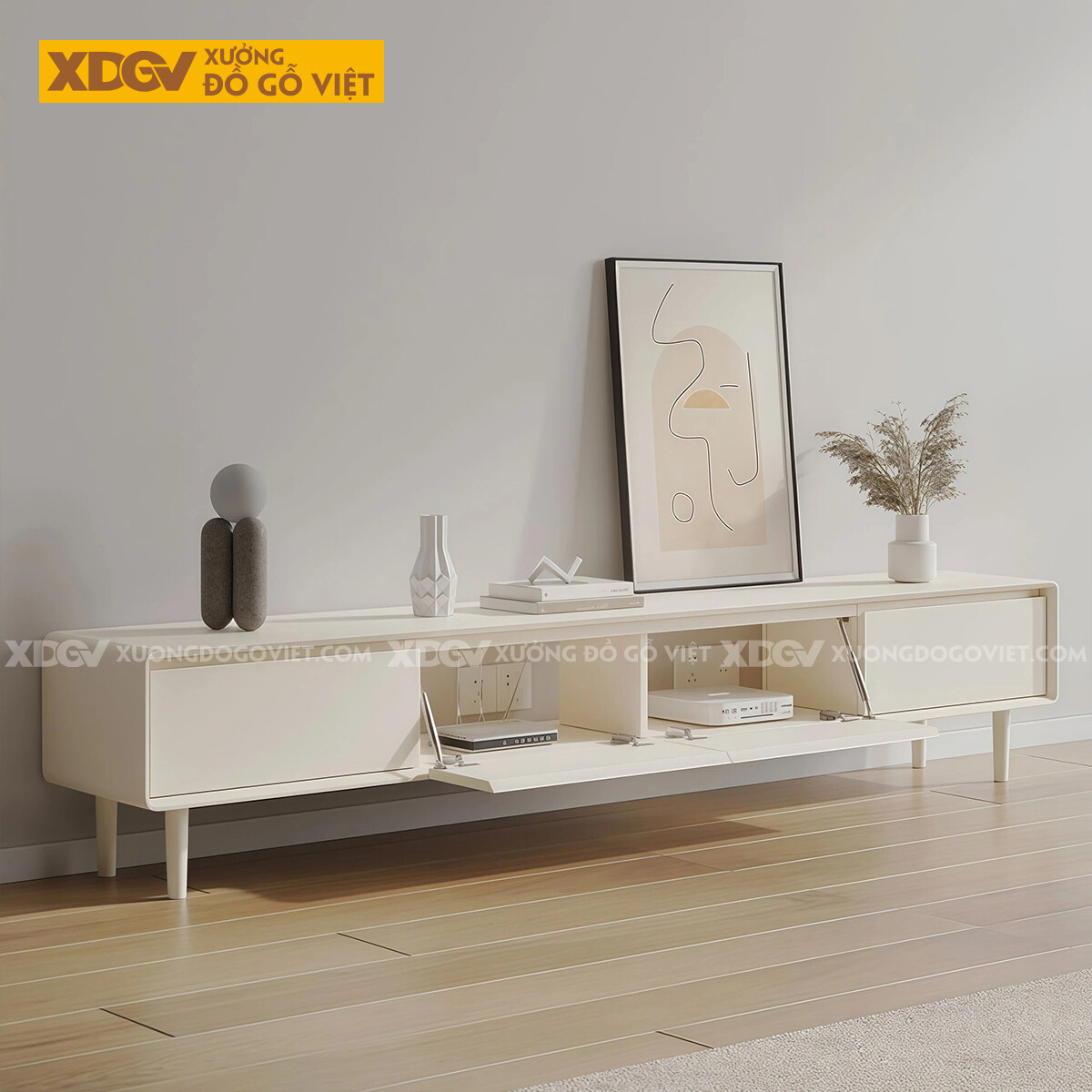 Mẫu Kệ Để Tivi Phòng Khách Gỗ Cao Su Hiện Đại Dáng Thấp Dài