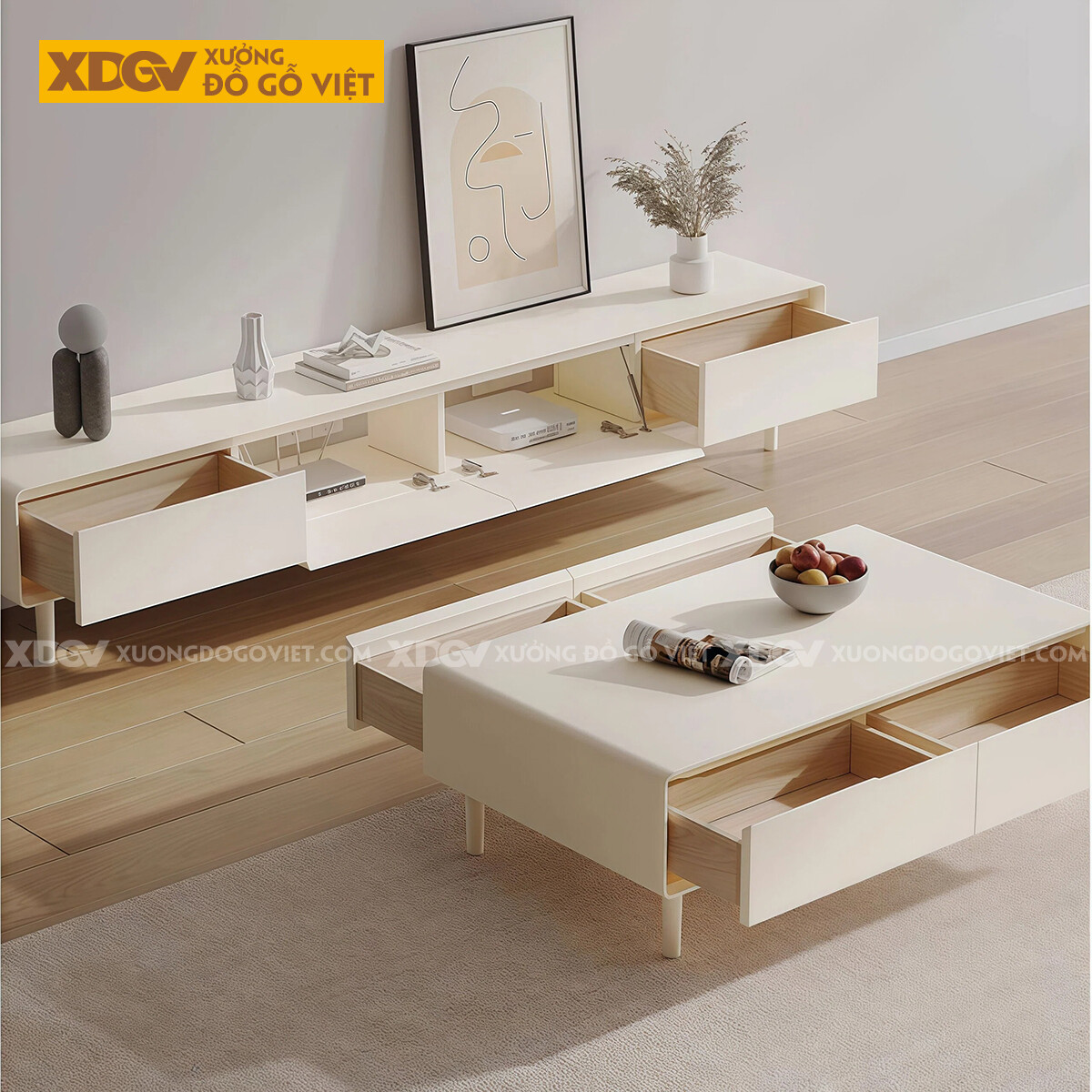 Kệ Tivi Trưng Bày Phong Khách Gỗ Cao Su Ngăn Kéo Trung Tâm