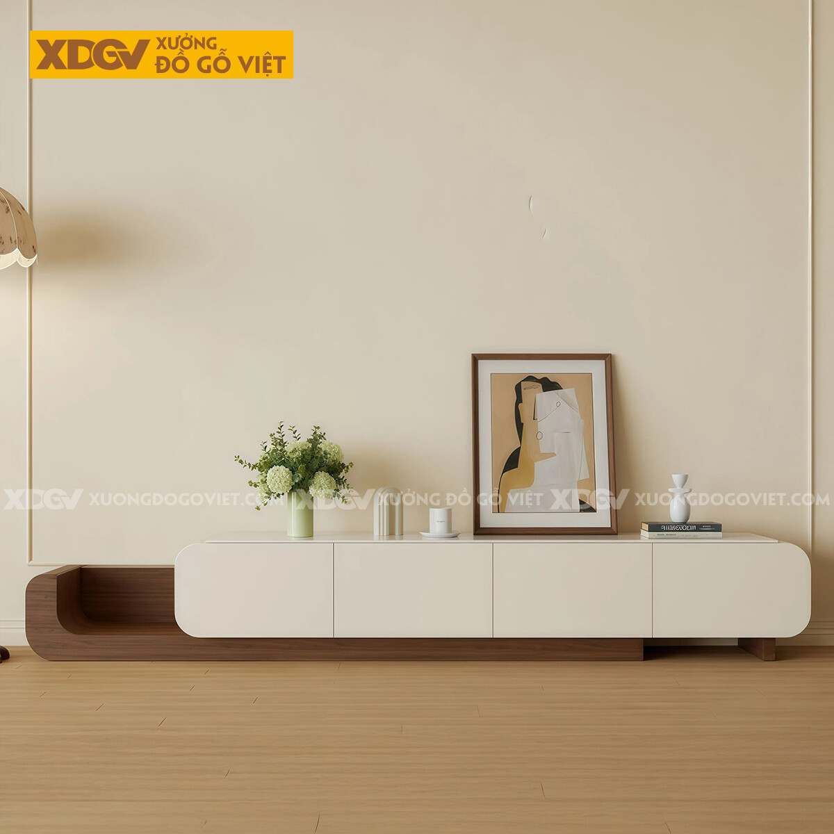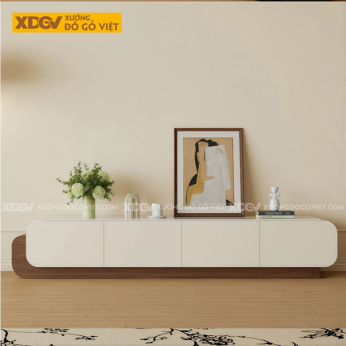 Kệ Để Tivi Trưng Bày Hiện Đại Gỗ Cao Su Mặt Đá Bo Tròn 2 Bên