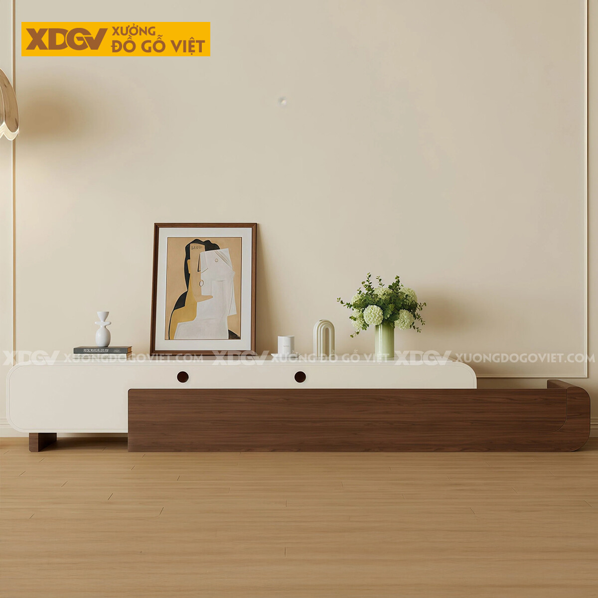 Kệ Tivi Trưng Bày Phòng Khách Gỗ Cao Su Kéo Trượt Mở Rộng