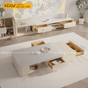 Kệ Để Tivi Trưng Bày Hiện Đại Gỗ Cao Su Mặt Đá Bo Tròn 2 Bên