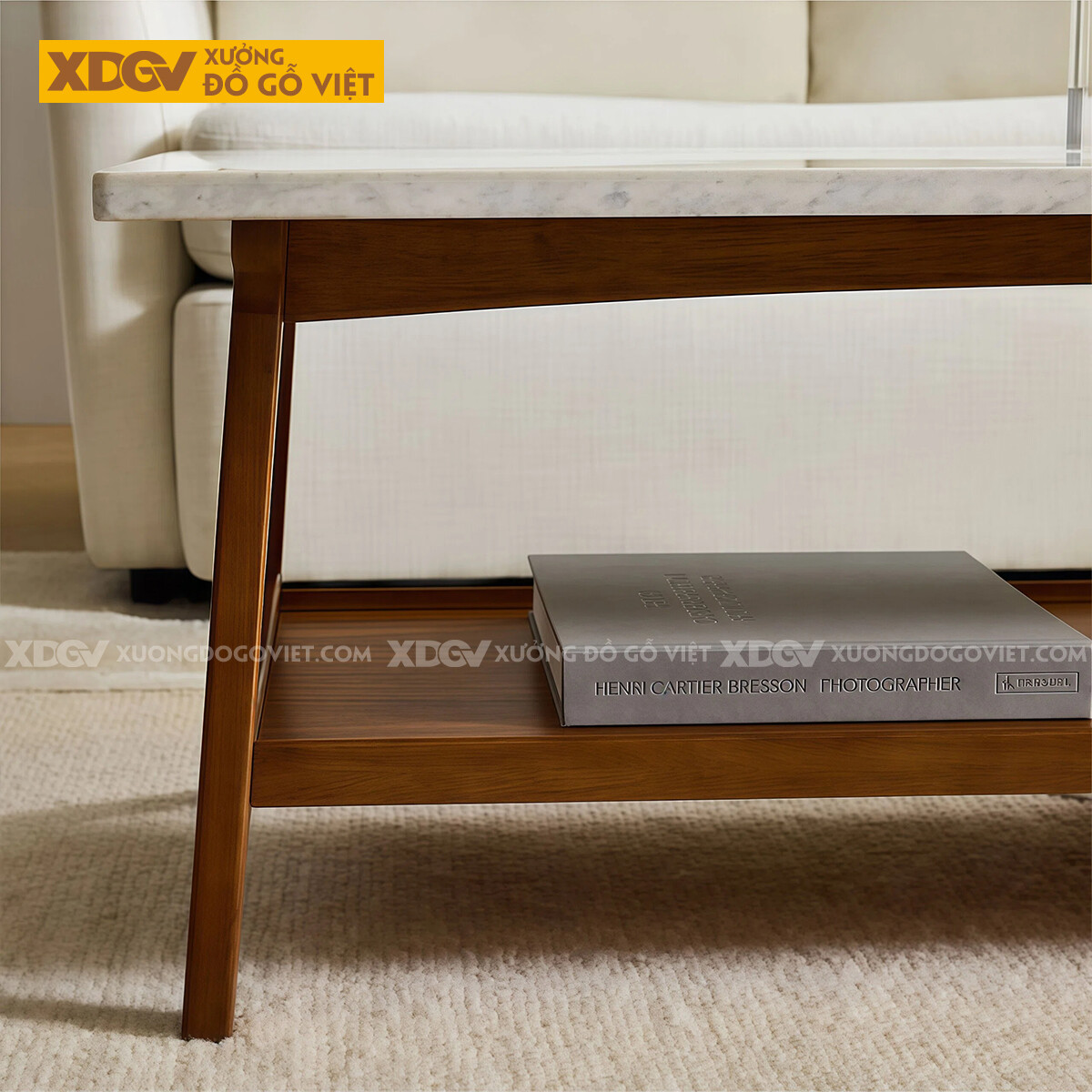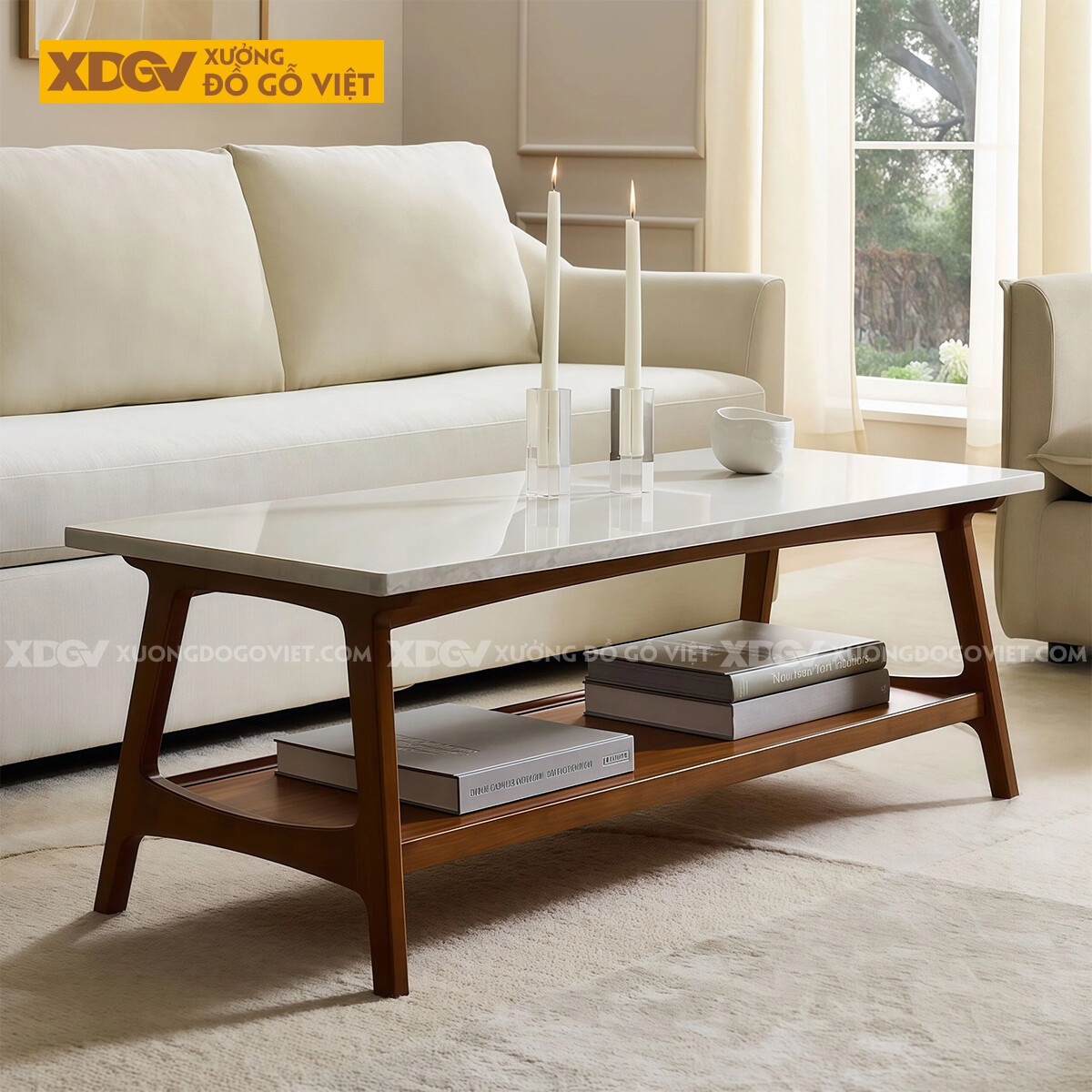 Mẫu Bàn Sofa Phòng Khách Gỗ Sồi Dáng Chân Chữ A Phối Mặt Đá