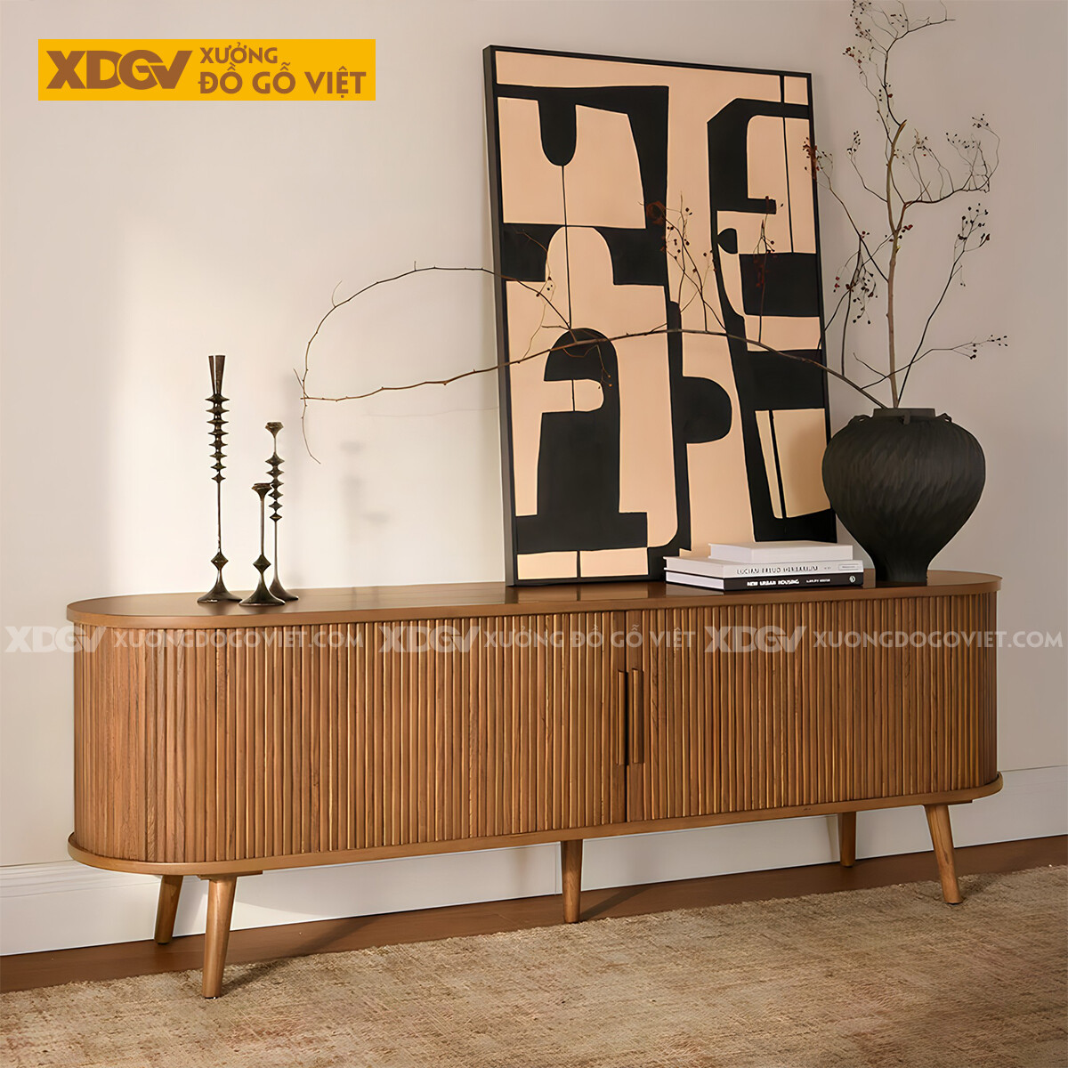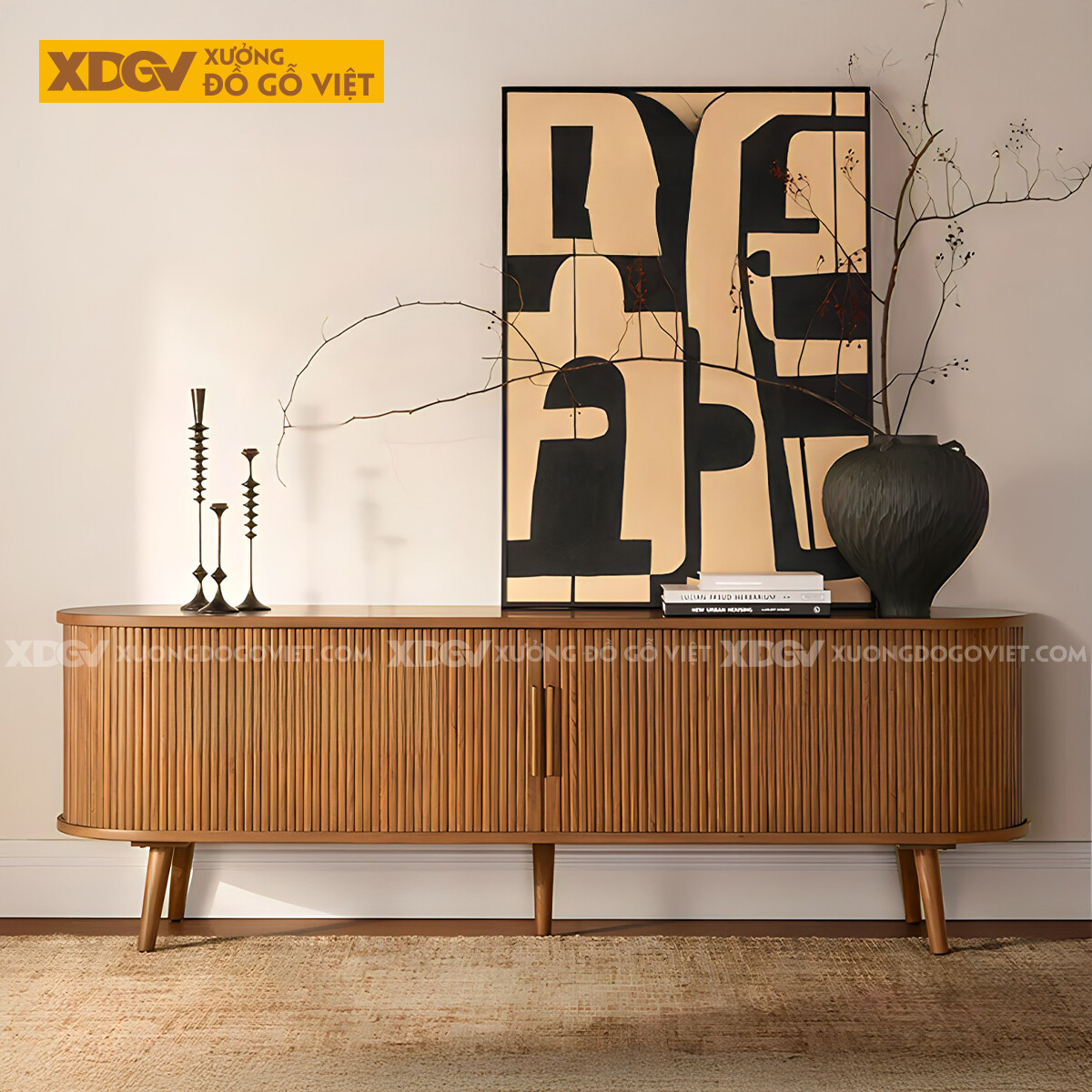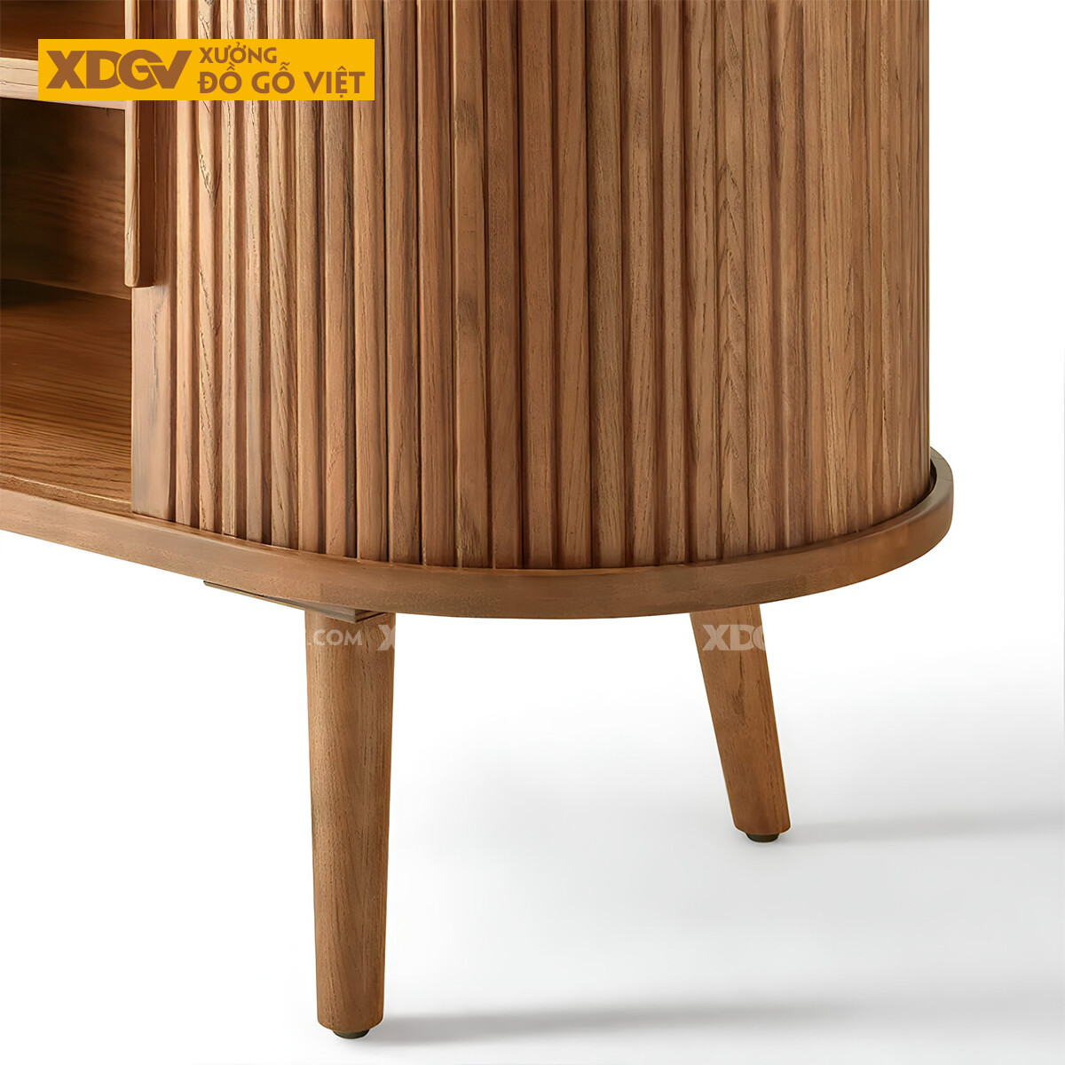 Mẫu Kệ Để Tivi Gỗ Sồi Tự Nhiên Hình Oval Nan Dọc Cổ Điển