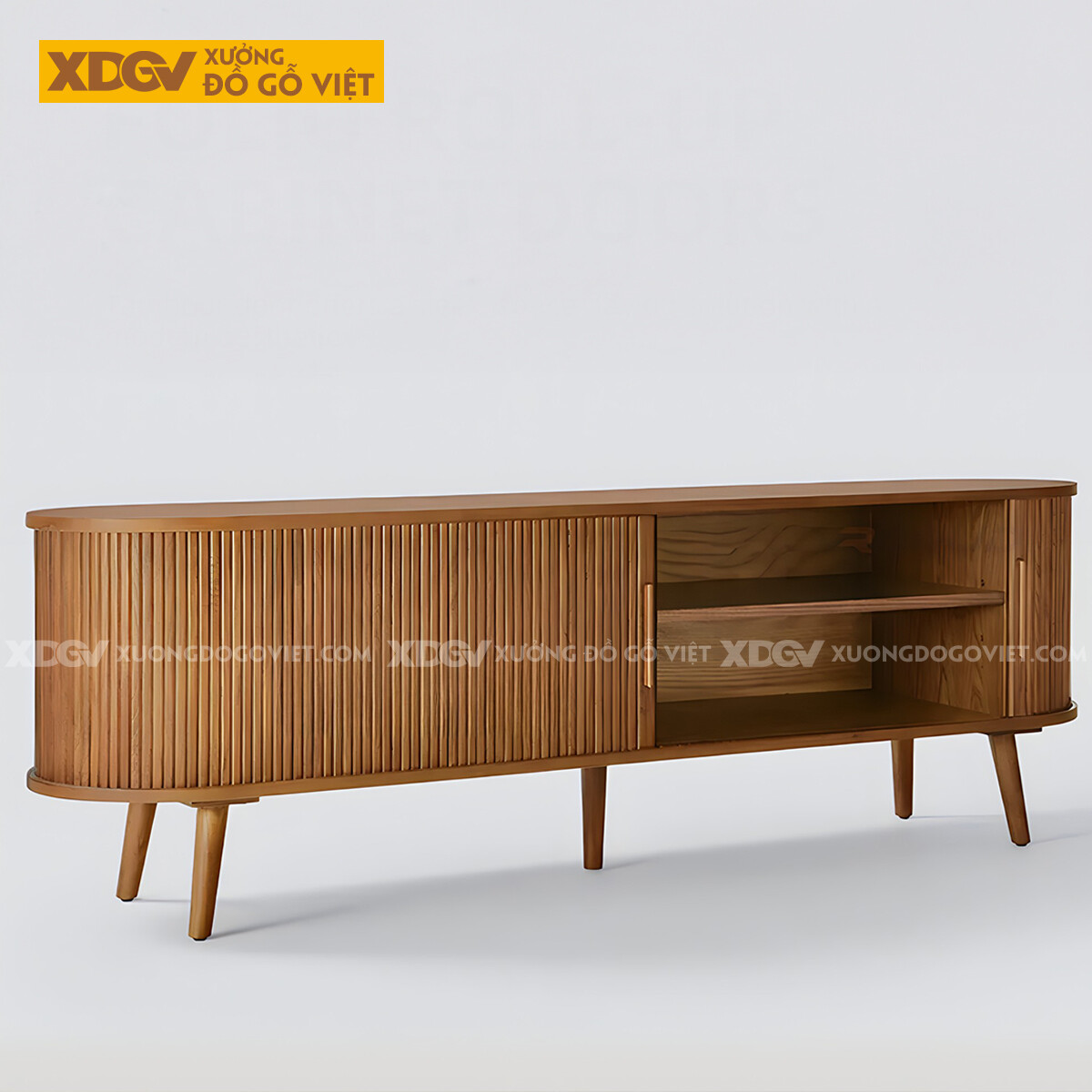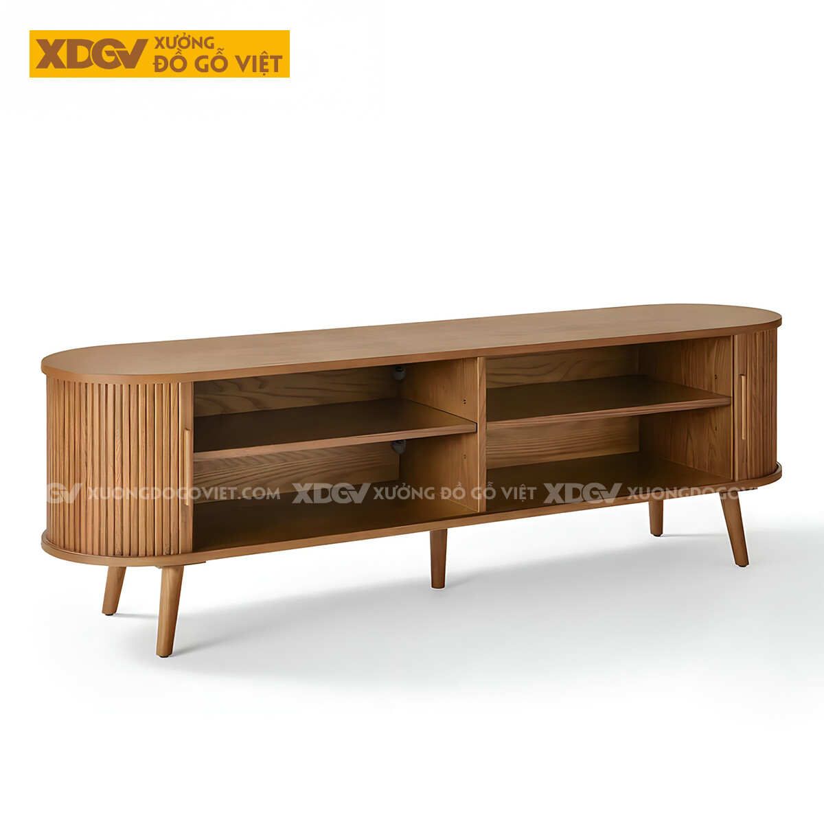 Mẫu Kệ Tivi Gỗ Sồi Mỹ Cánh Mở Góc Bo Tròn Ghép Liền Mạch