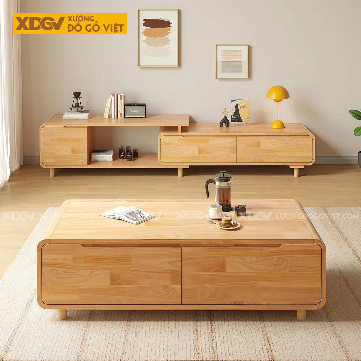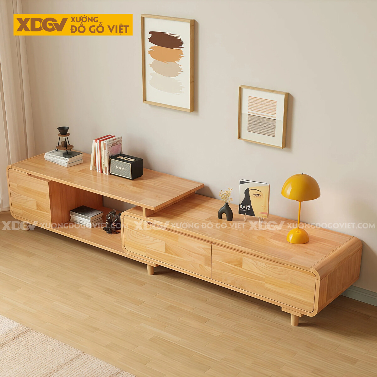 Kệ Tivi Trưng Bày Phòng Khách Gỗ Cao Su Kéo Trượt Mở Rộng