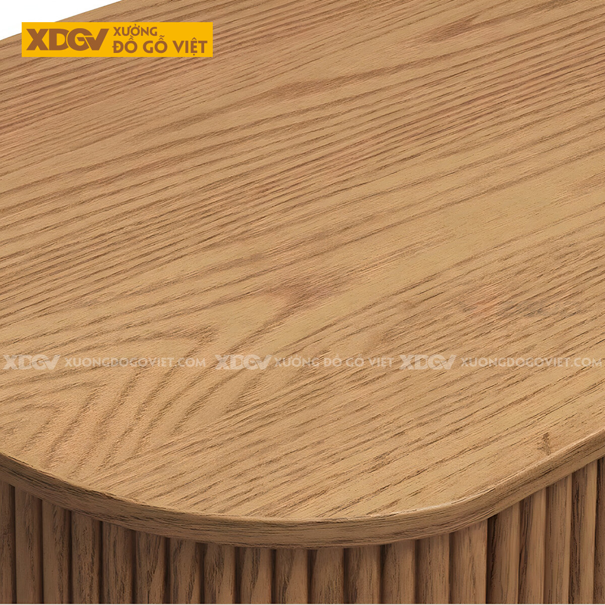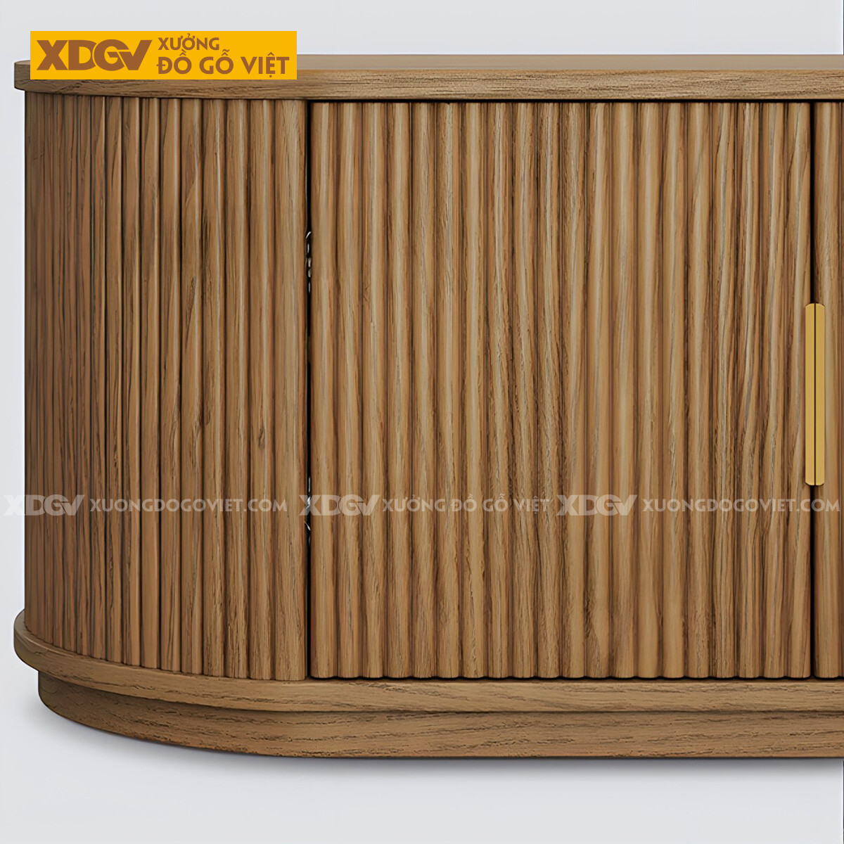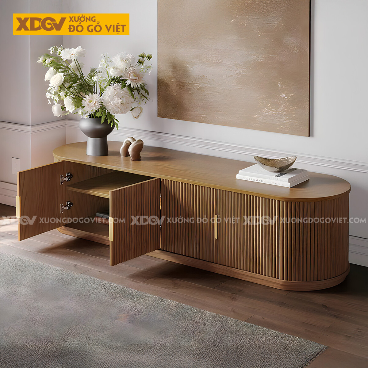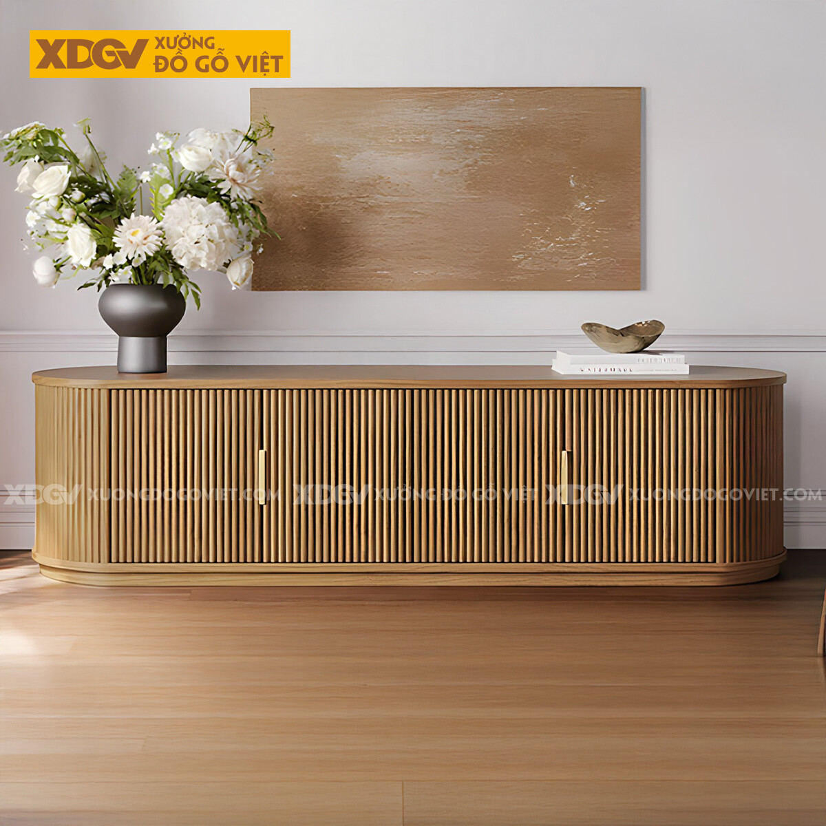Mẫu Kệ Tivi Đặt Sàn Gỗ Sồi Nan Dọc Bo Tròn Hình Oval Đẹp