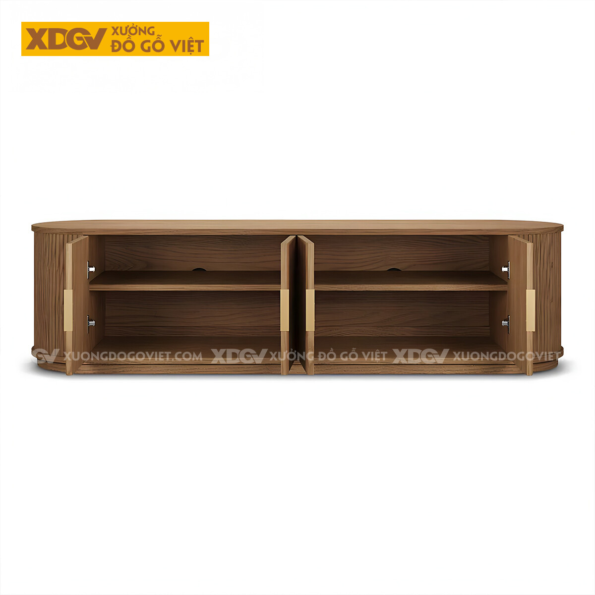 Mẫu Kệ Tivi Gỗ Sồi Mỹ Cánh Mở Góc Bo Tròn Ghép Liền Mạch