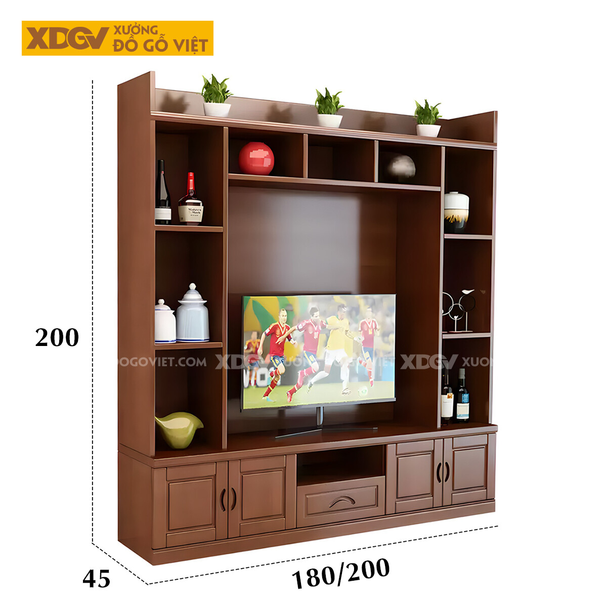 Mẫu Kệ Tivi Gỗ Sồi Mỹ Kết Hợp Tủ Nhiều Hộc Đựng Và Kệ Trên