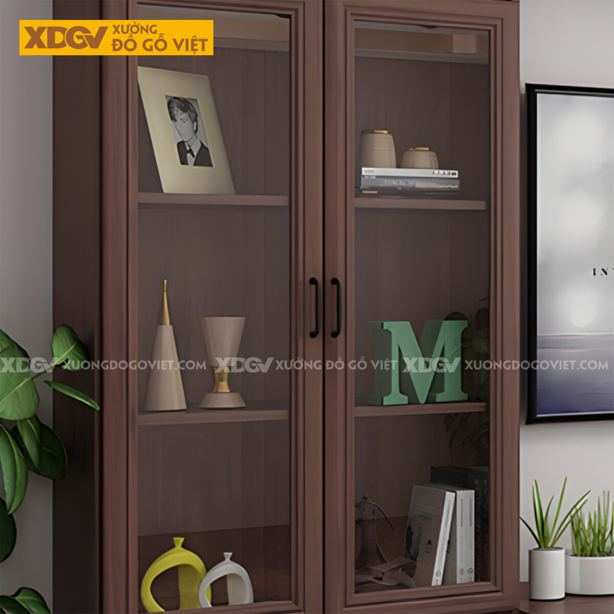 Kệ Tivi Liền Tủ Gỗ Óc Chó Tự Nhiên Kết Hợp Cánh Kính Trong