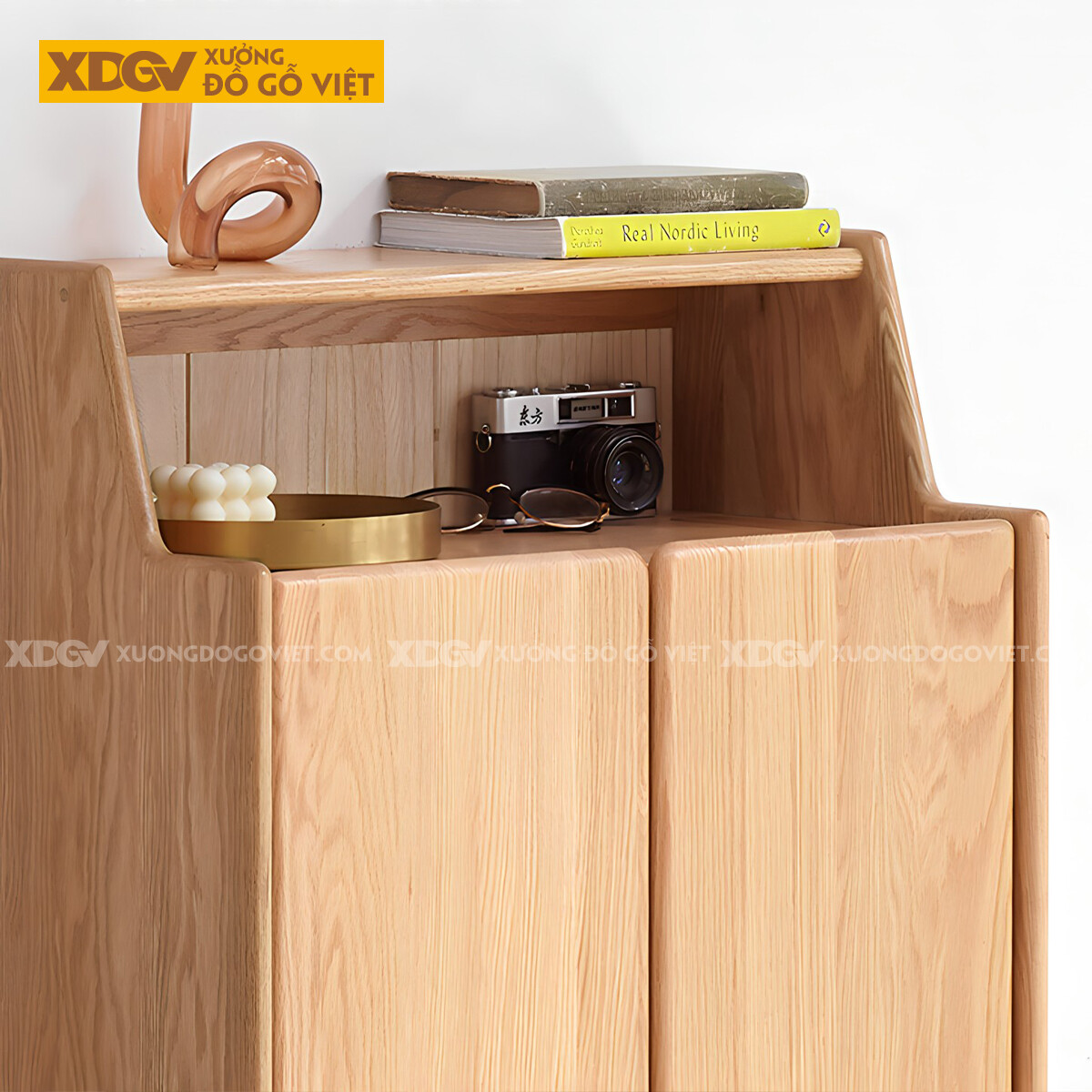 Tủ Đựng Giày Gỗ Sồi Chân Cao Cánh Bo Góc Ngăn Kéo Trên
