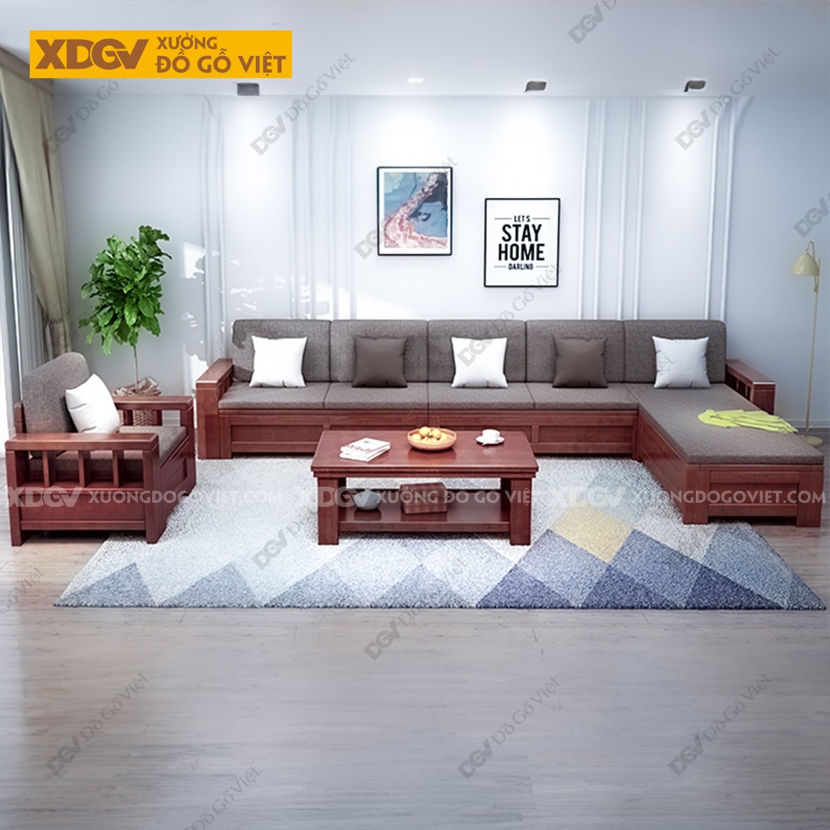 Kích thước bài trí nguyên bộ: Dài 240cm x Rộng 198cm x Cao 89cm (Tay 10, gỗ dày 4-5cm).
