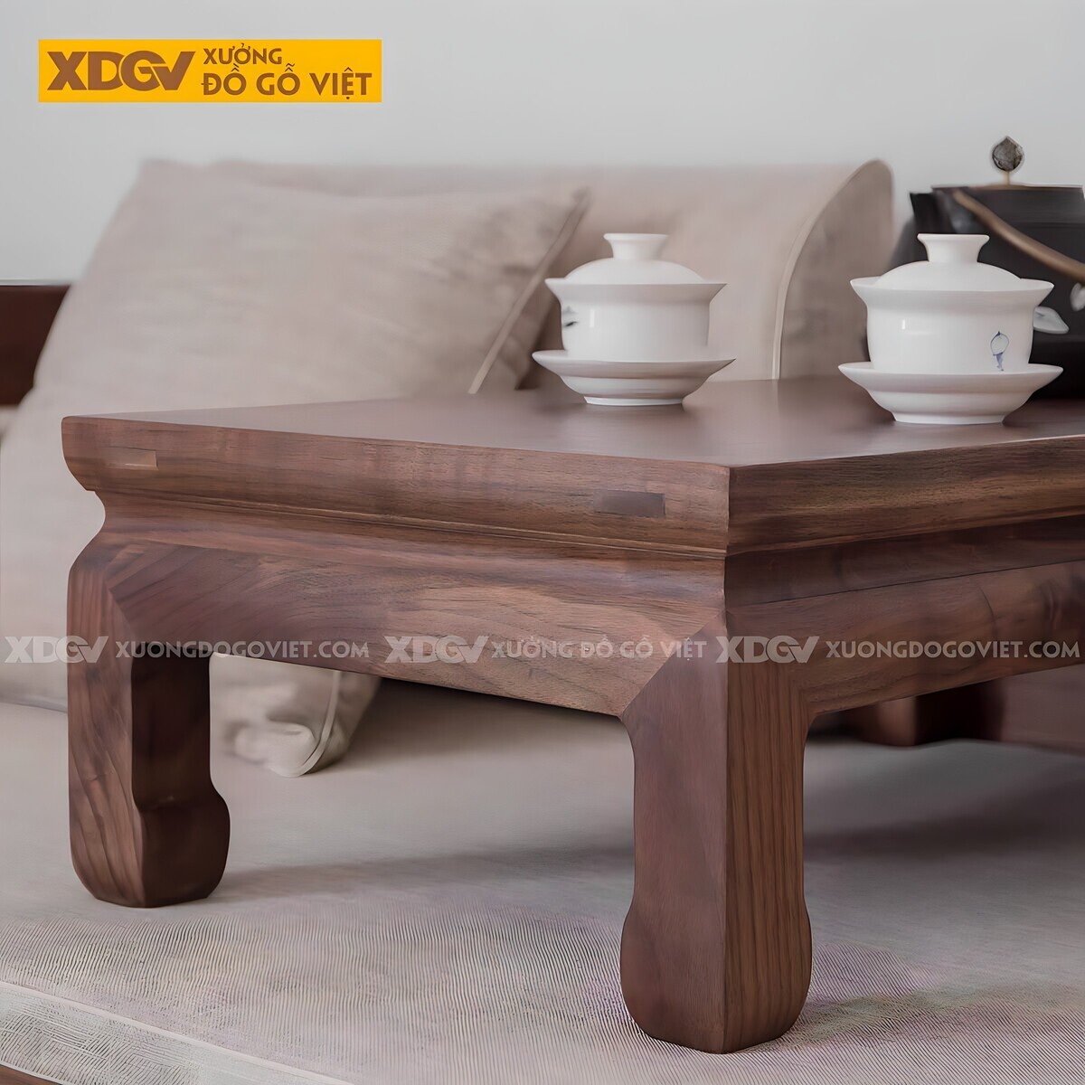Kỷ trà đi kèm: Chiếc bàn trà nhỏ (kỷ trà) được thiết kế đồng bộ và đặt ngay trên mặt giường là một phần không thể thiếu của kiểu dáng, hoàn thiện không gian thưởng trà và làm tăng tính công năng cho sản phẩm.