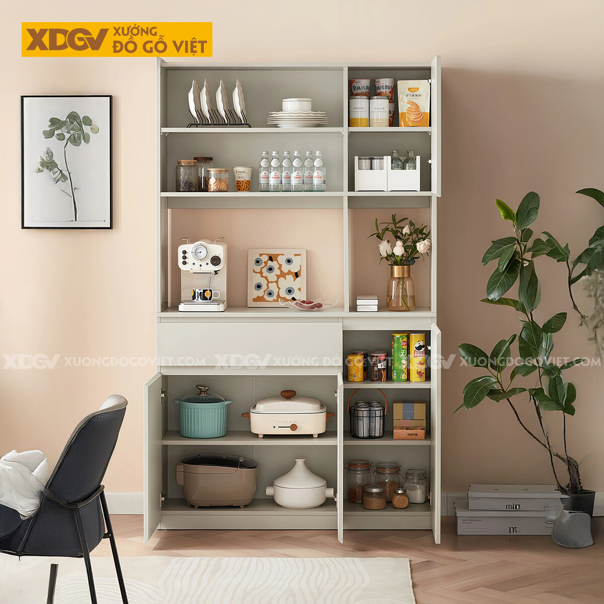 Tủ Để Chén Bát Cho Phòng Bếp Gỗ MDF Phối Kệ Đa Tầng Lưu Trữ