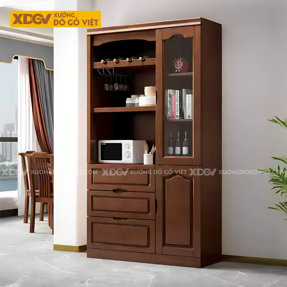 Mẫu Tủ Để Rượu Gỗ Cao Su Phòng Khách Tích Hợp Kệ Lưu Trữ...