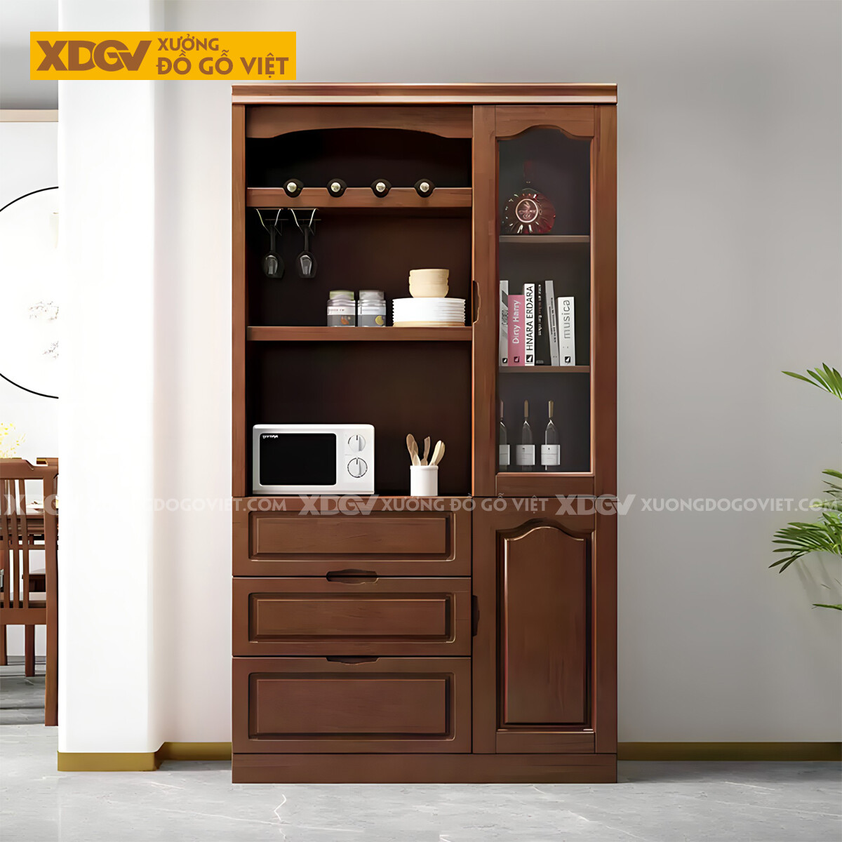 Tủ Để Rượu Phòng Khách Gỗ Cao Su Phối Hợp Cánh Kính Hiện Đại