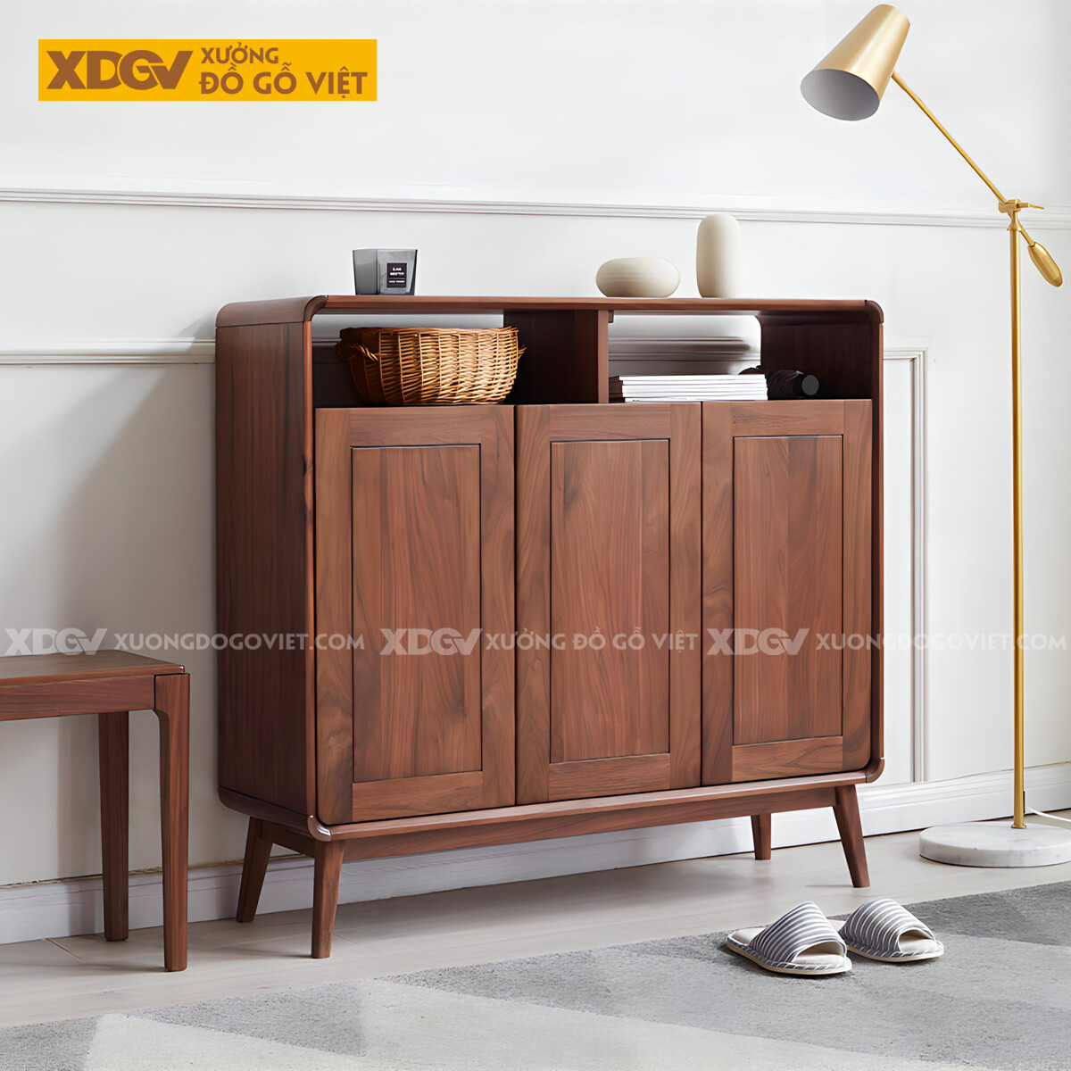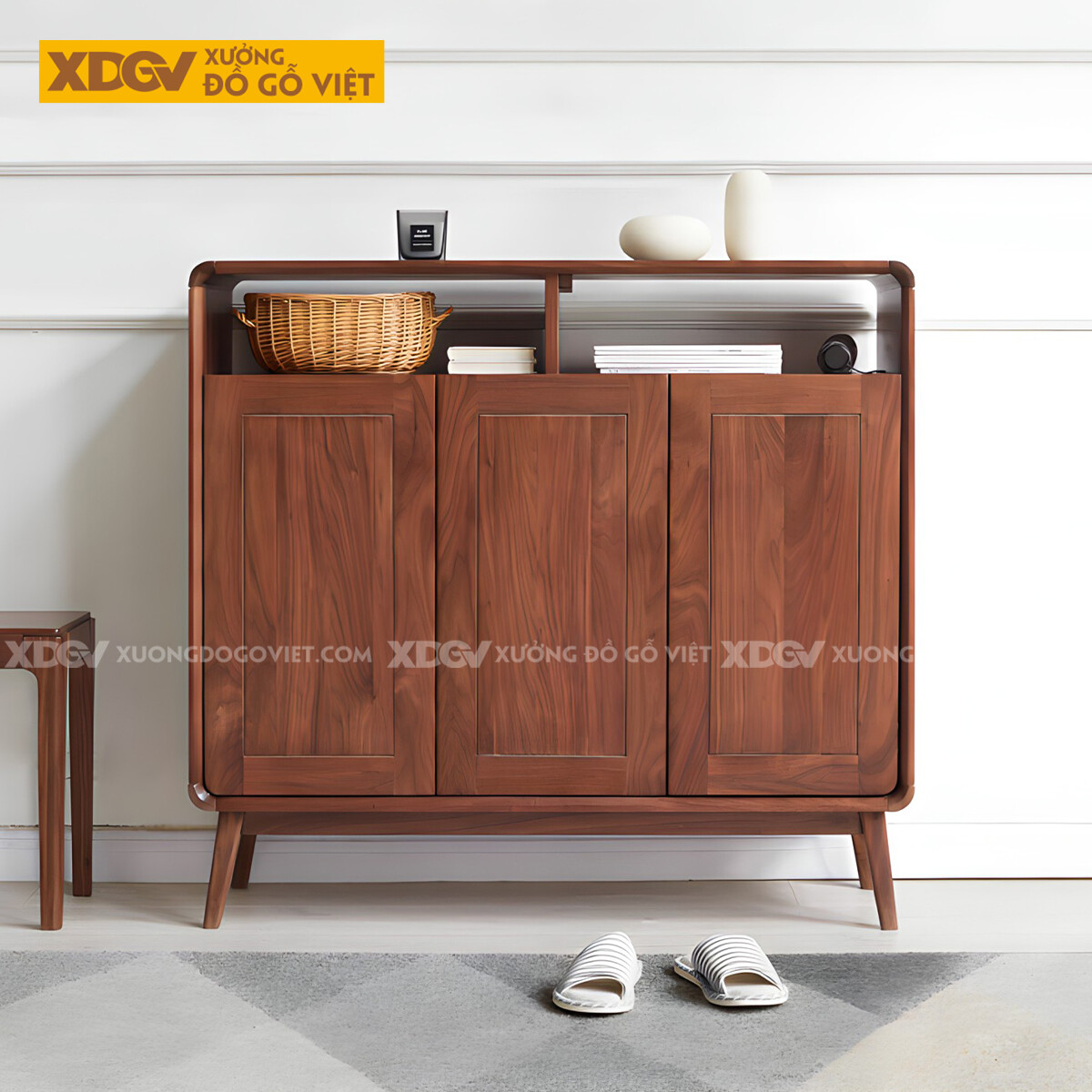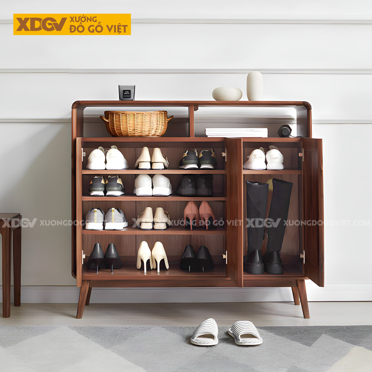 Tủ Đựng Giày Óc Chó Bo Tròn Góc Cánh Pano Vân Gỗ Tự Nhiên